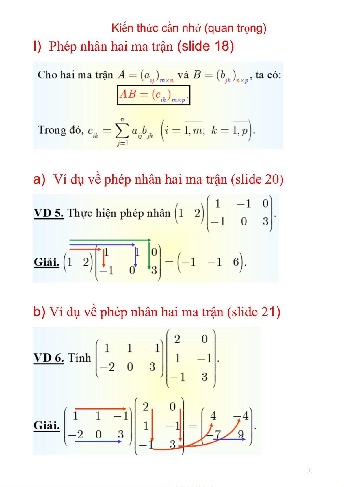 Kiến thức cần nhớ (quan trọng) I) (slide 18) Phép nhân hai ma trận a)