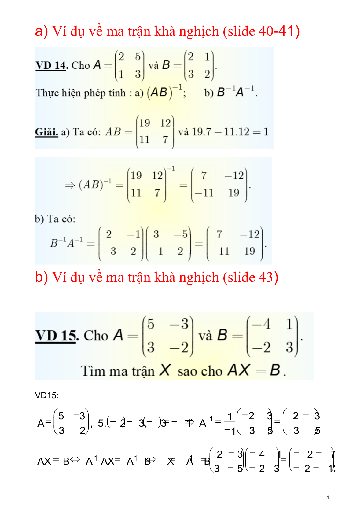 a) Ví dụ về ma trận khả nghịch (slide 40-41)