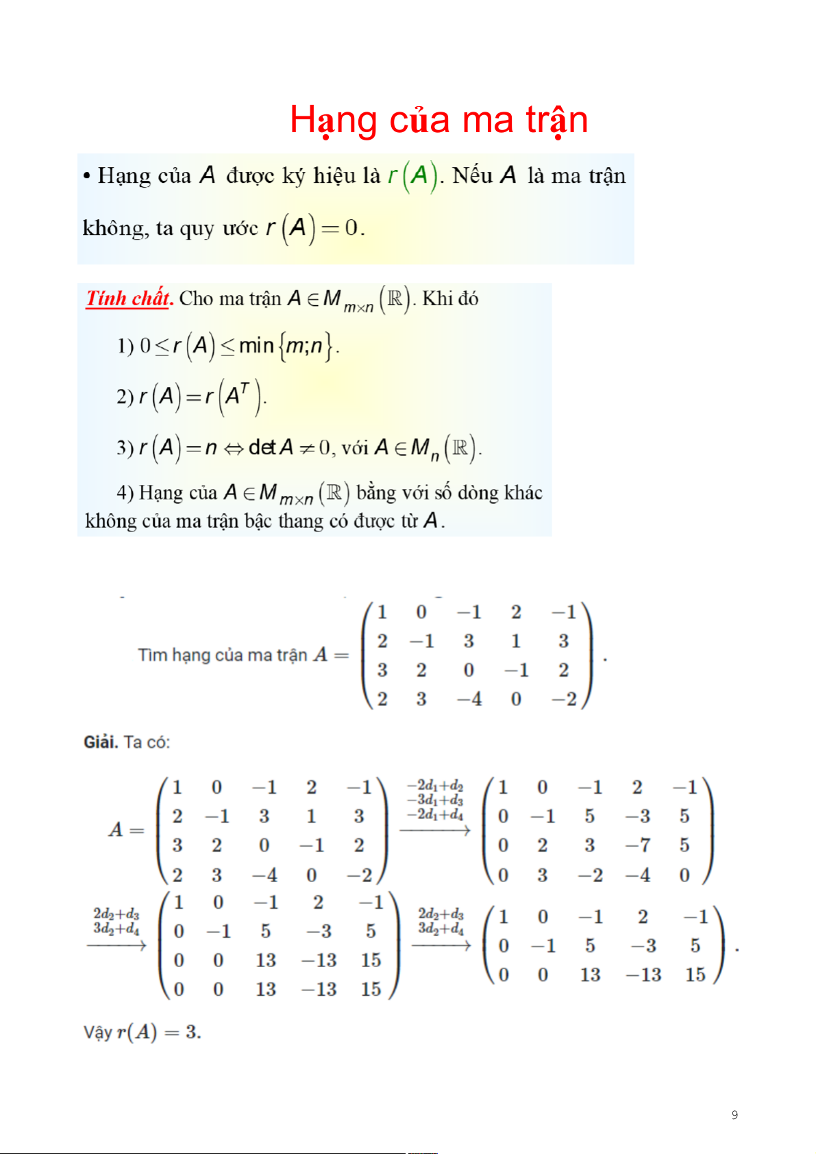 n : kết luận hệ có nghiệm duy nhất; ▪ Nếu r( ) A