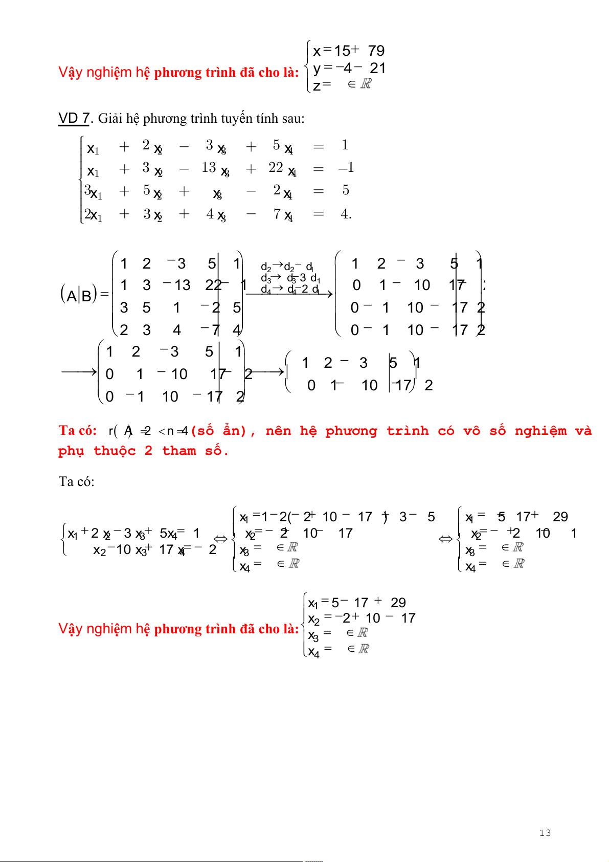 → 0 1 − 10 17− 2⎯⎯ → 0 1− 10 1 − 7 2 0 − 1 10 − 17 2 Ta có: r( ) A 2 = n 4 = (số ẩn), nên ệ