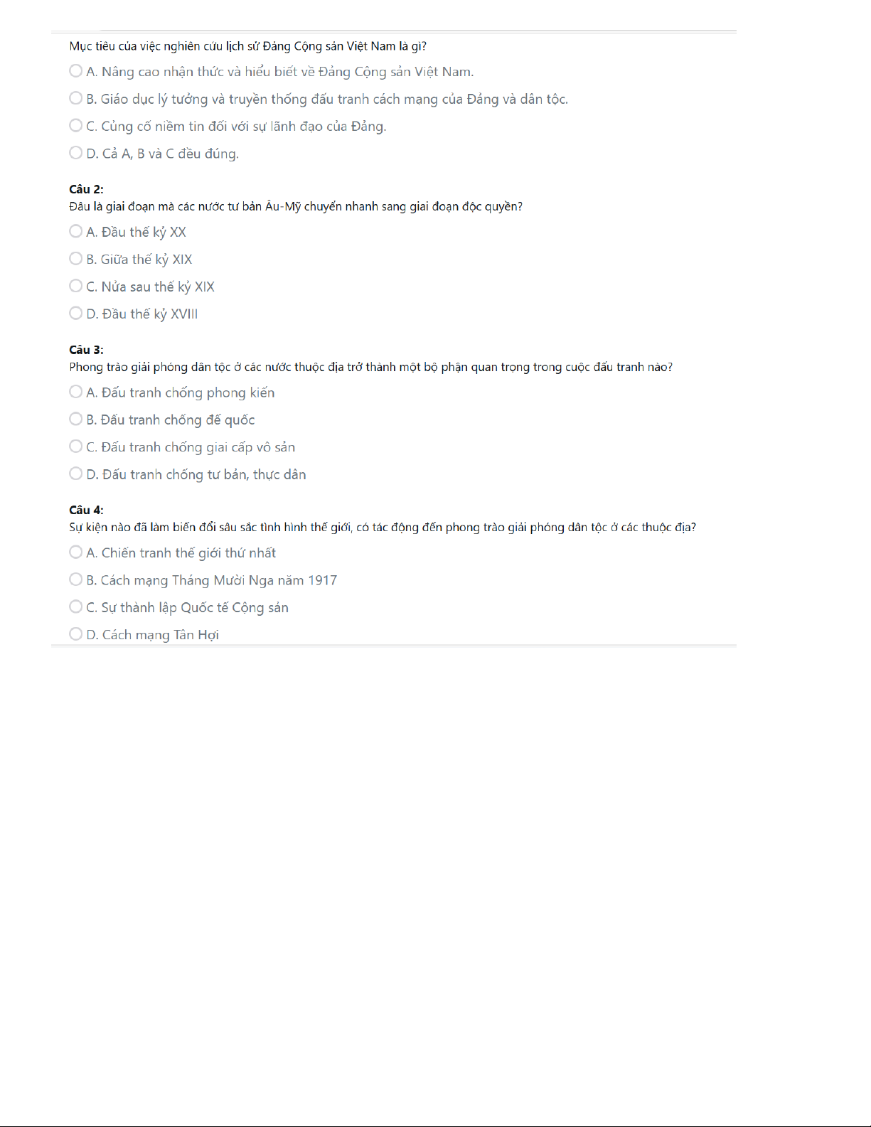 ÔN TẬP câu hỏi Lịch sử Đảng
