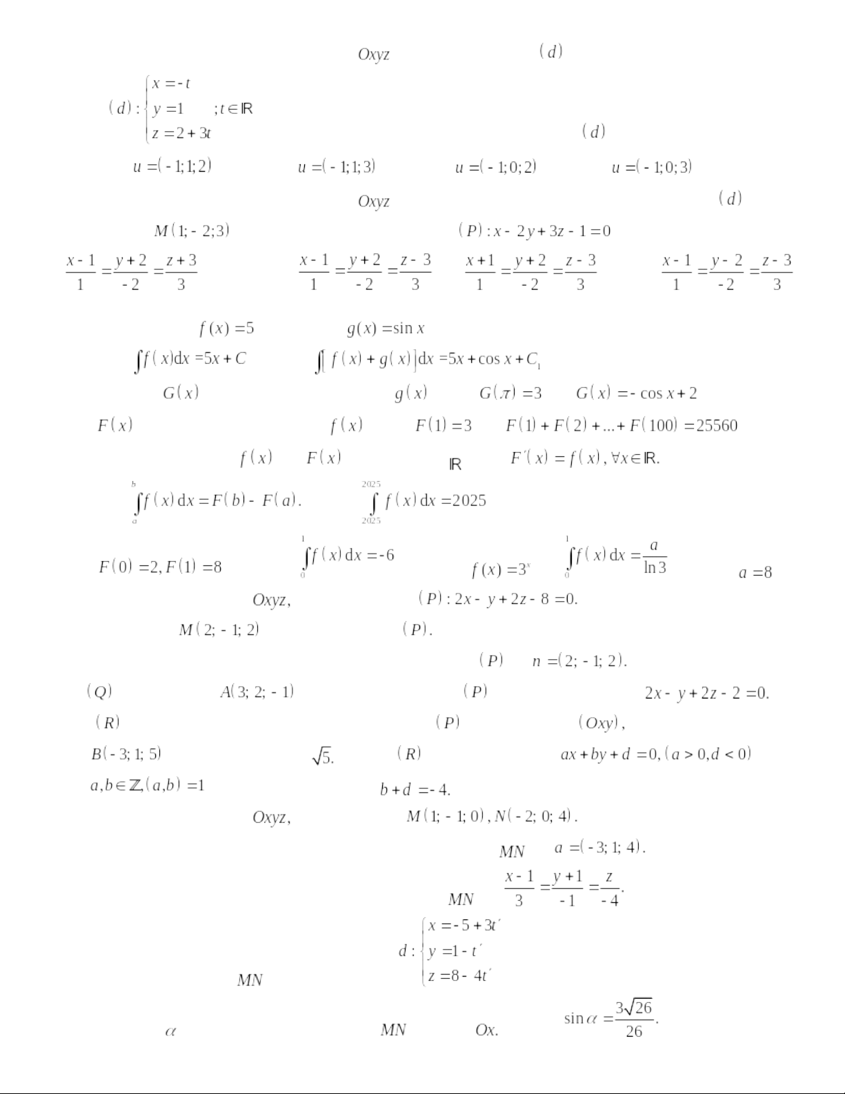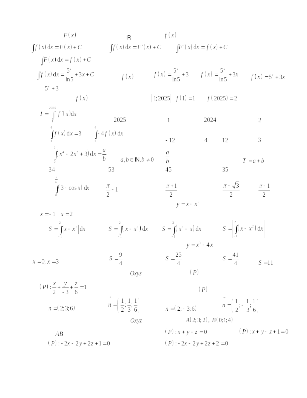 ÔN TẬP 3. Nguyên hàm - tích phân và Oxyz. Ngày 08.10.2025
