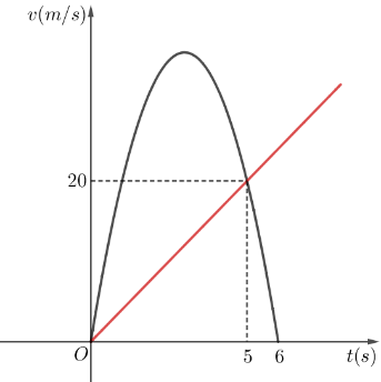 bắt đầu chuyển động cùng một lúc và cùng vạch xuất phát, cùng chiều trên một con đường. Biết đồ thị biểu diễn vận tốc của chất điểm
