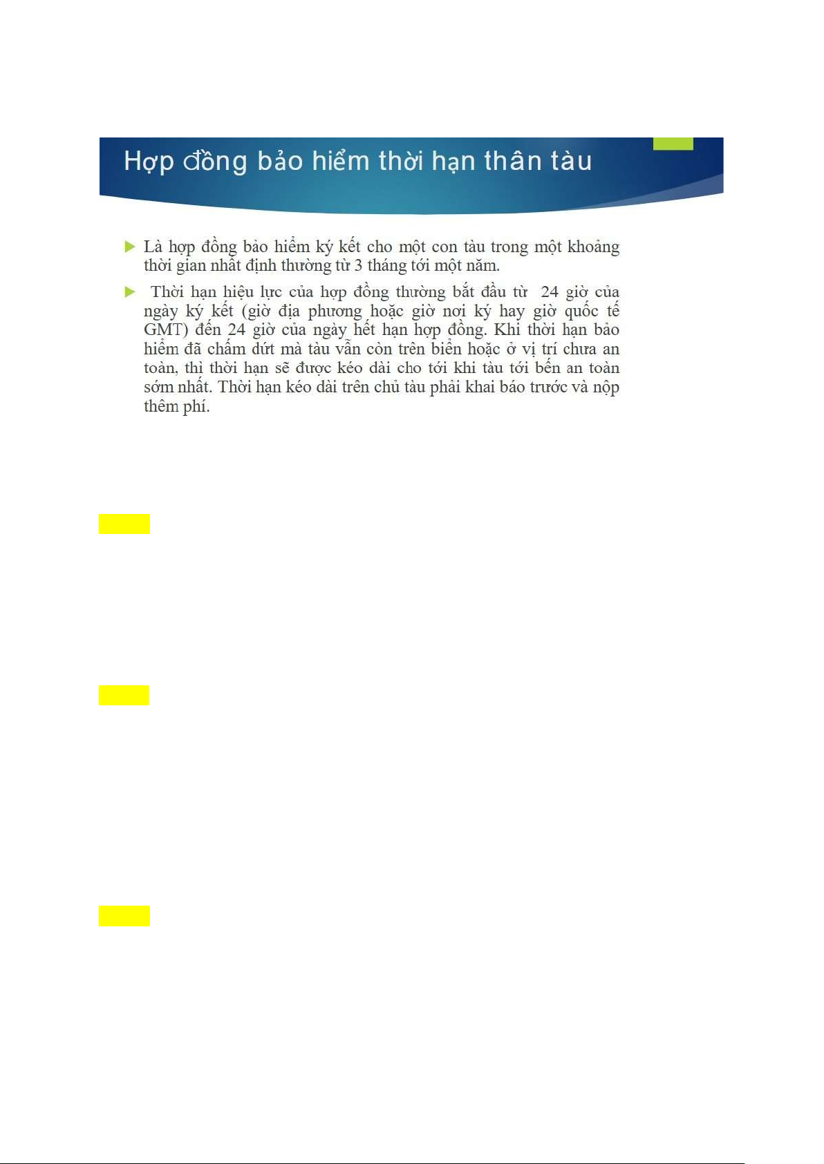 Câu hỏi 3 Hợp đồng bảo hiểm bảo hiểm chuyến trong hợp đồng bảo hiểm thân tàu là