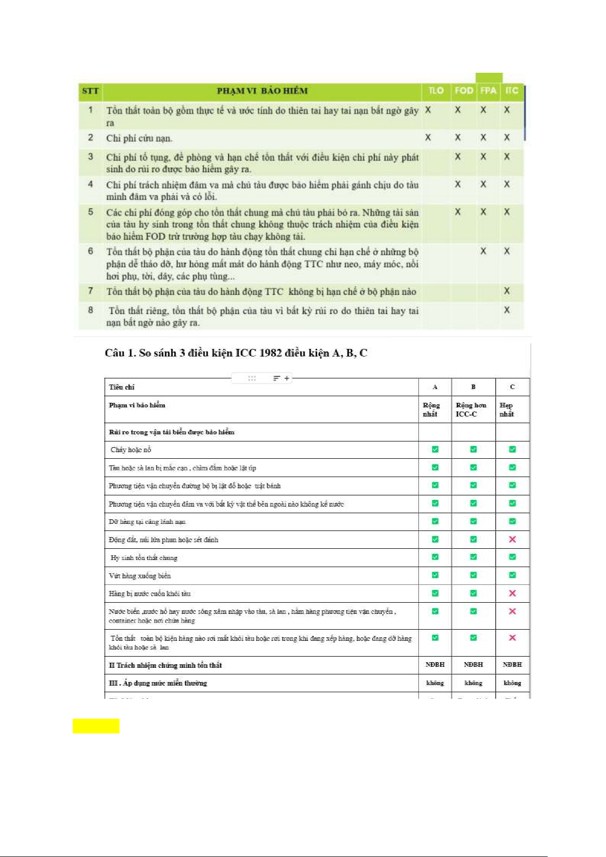 Câu hỏi 2 Theo điều kiện ITC 1983 tham gia điều kiện bảo hiểm nào phí bảo hiểm người