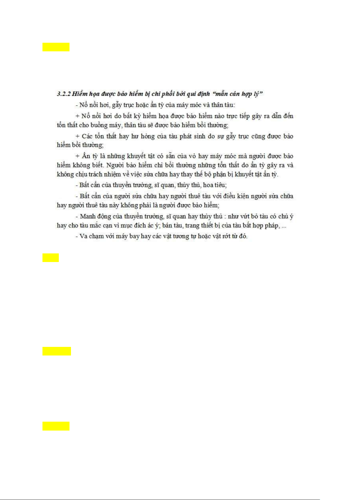 Câu 10 Trong bảo hiểm thân tàu không áp dụng mức miễn thường cho