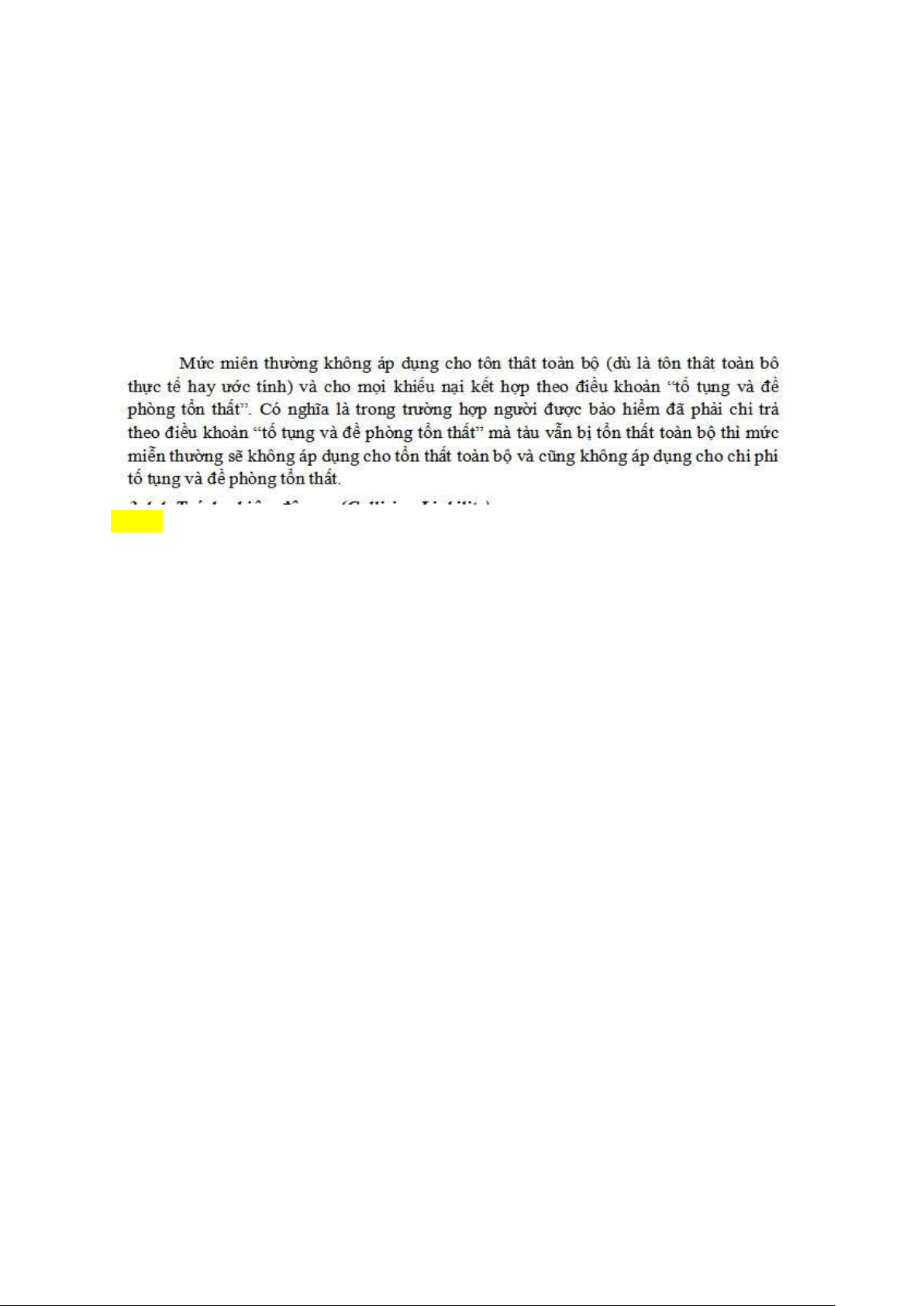 miễn thường sẽ không áp dụng cho tổn thất toàn bộ và cũng không áp dụng cho chi phí tố