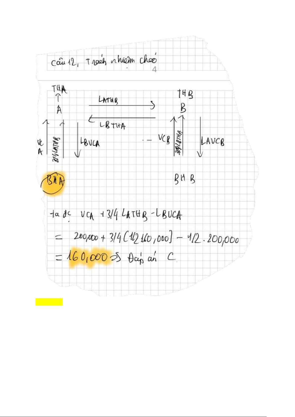Câu 12 Tàu A và B đâm va với nhau, lỗi tàu A ½ tàu B ½ gây thiệt hại thần tàu A: 200.000
