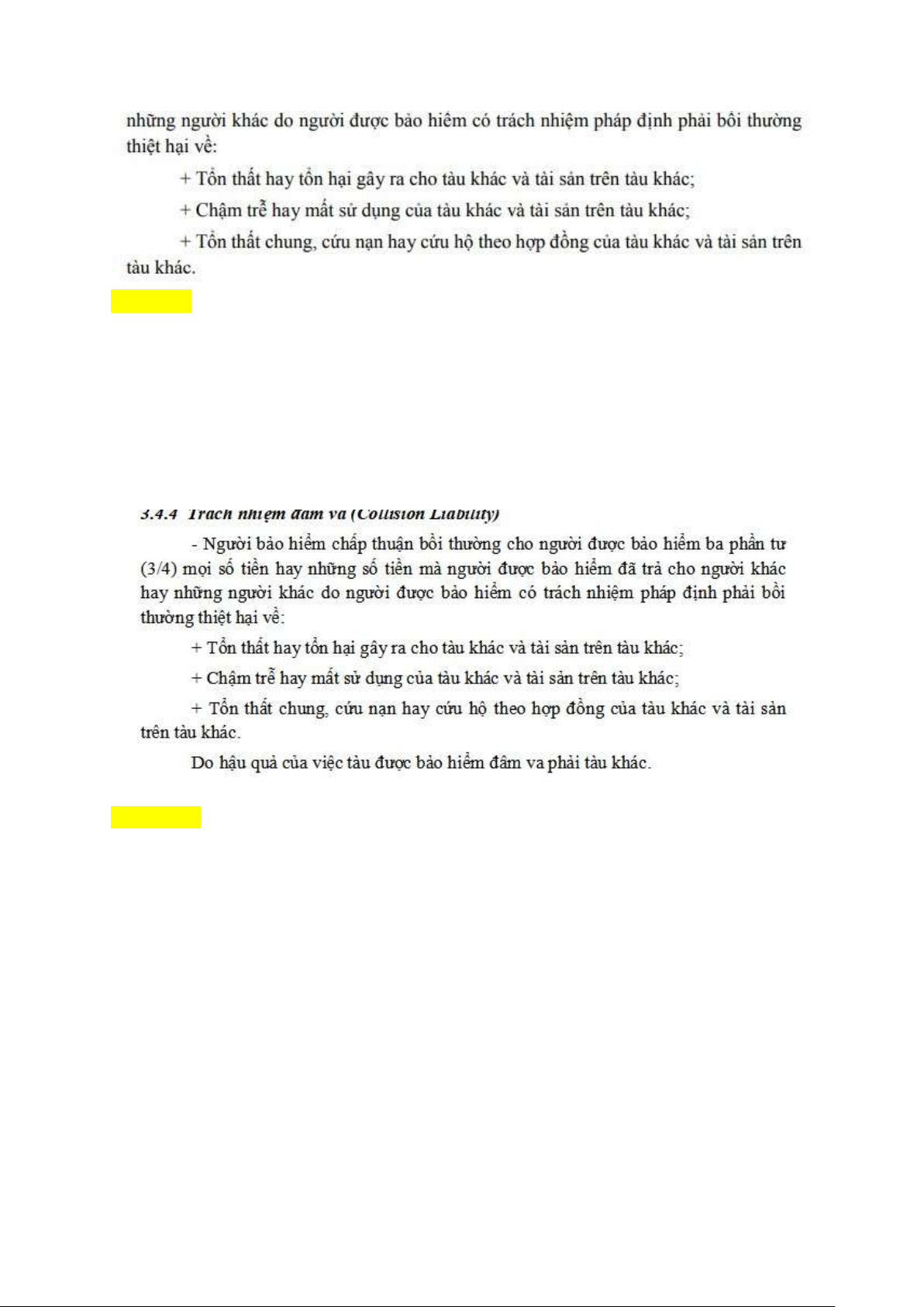 b. Tổn thất hay tổn hại gây ra cho tàu khác và tài sản trên tàu khác:
