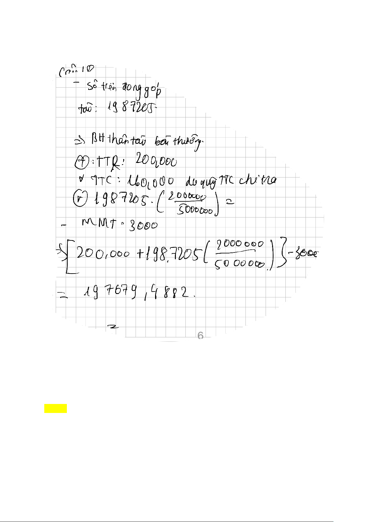 Câu 7 Thời gian chờ thầu là 10 ngày. Tính số tiền bảo hiểm phải bồi thường cho những ngày