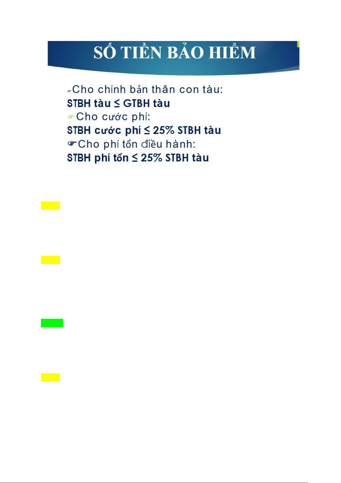 c. Giá trị bảo hiểm tàu d. 25% STBH tàu