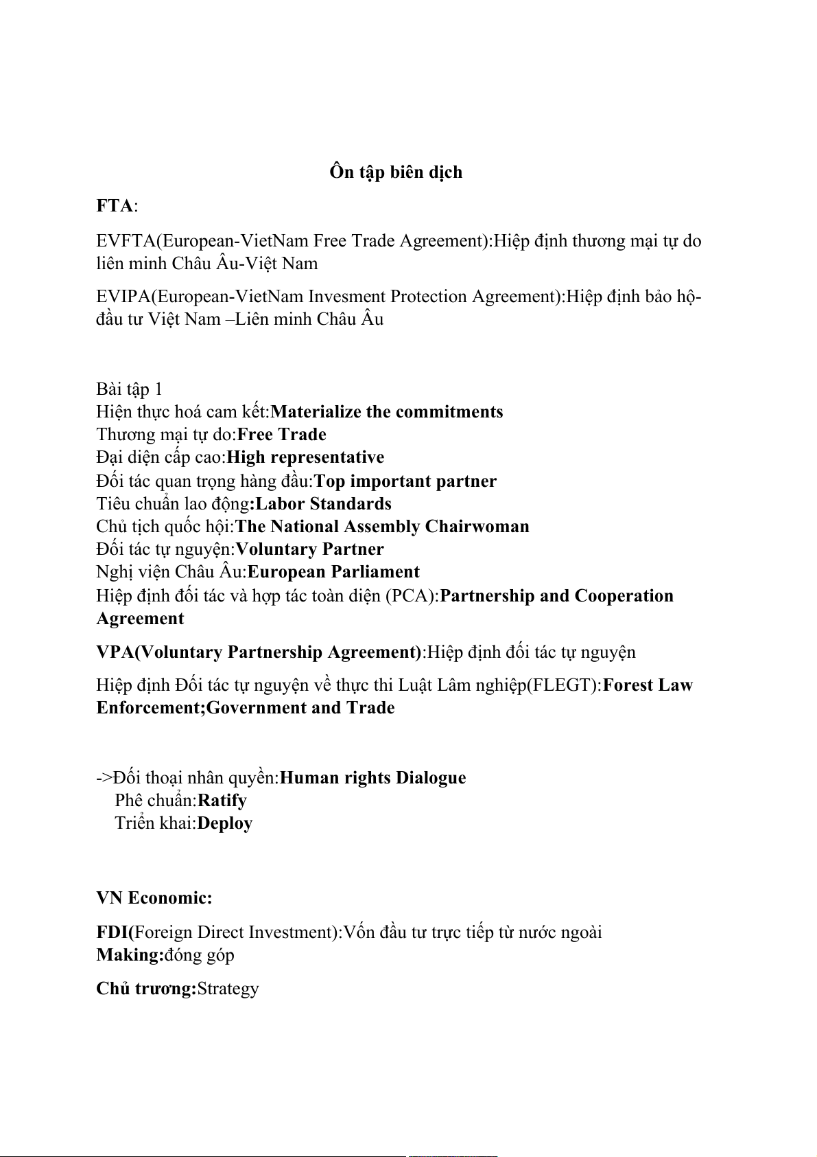 đầu tư Việt Nam –Liên minh Châu Âu Bài tập 1