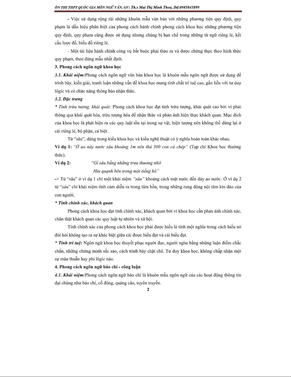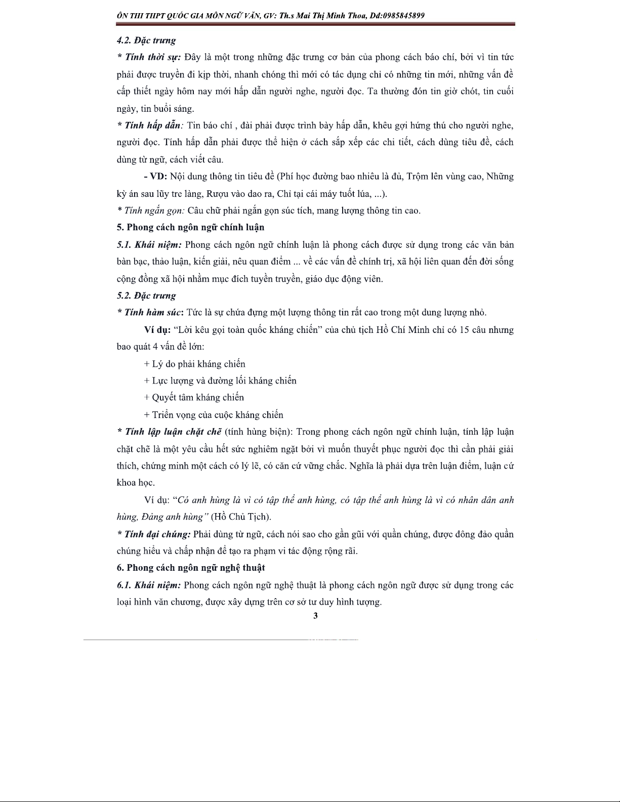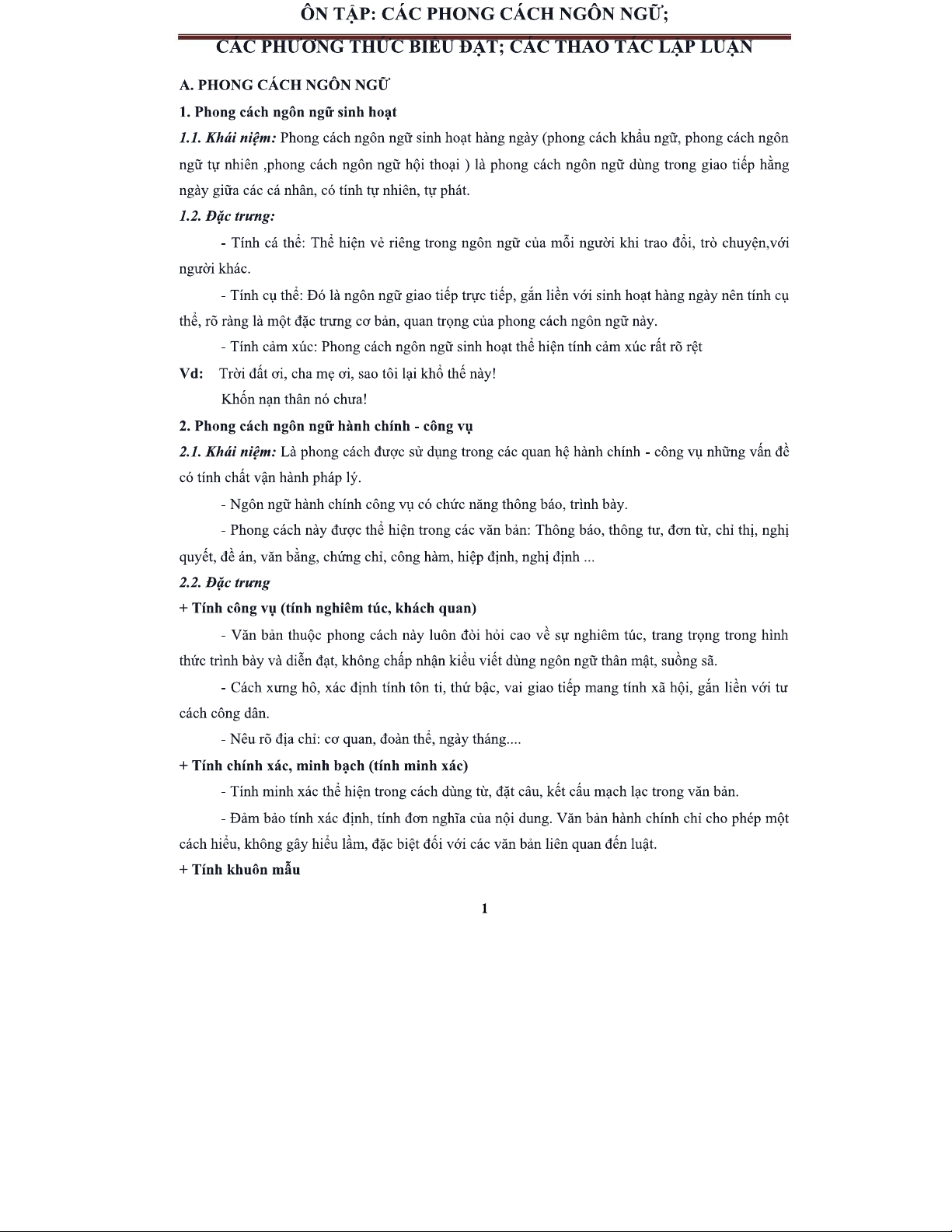 ÔN TẬP CÁC PHONG CÁCH NGÔN NGỮ VÀ PHƯƠNG THỨC BIỂU ĐẠT