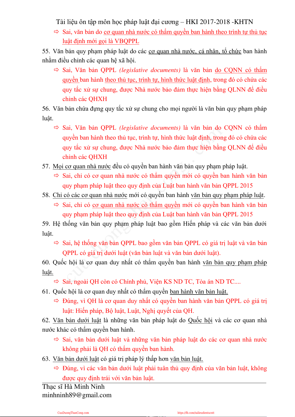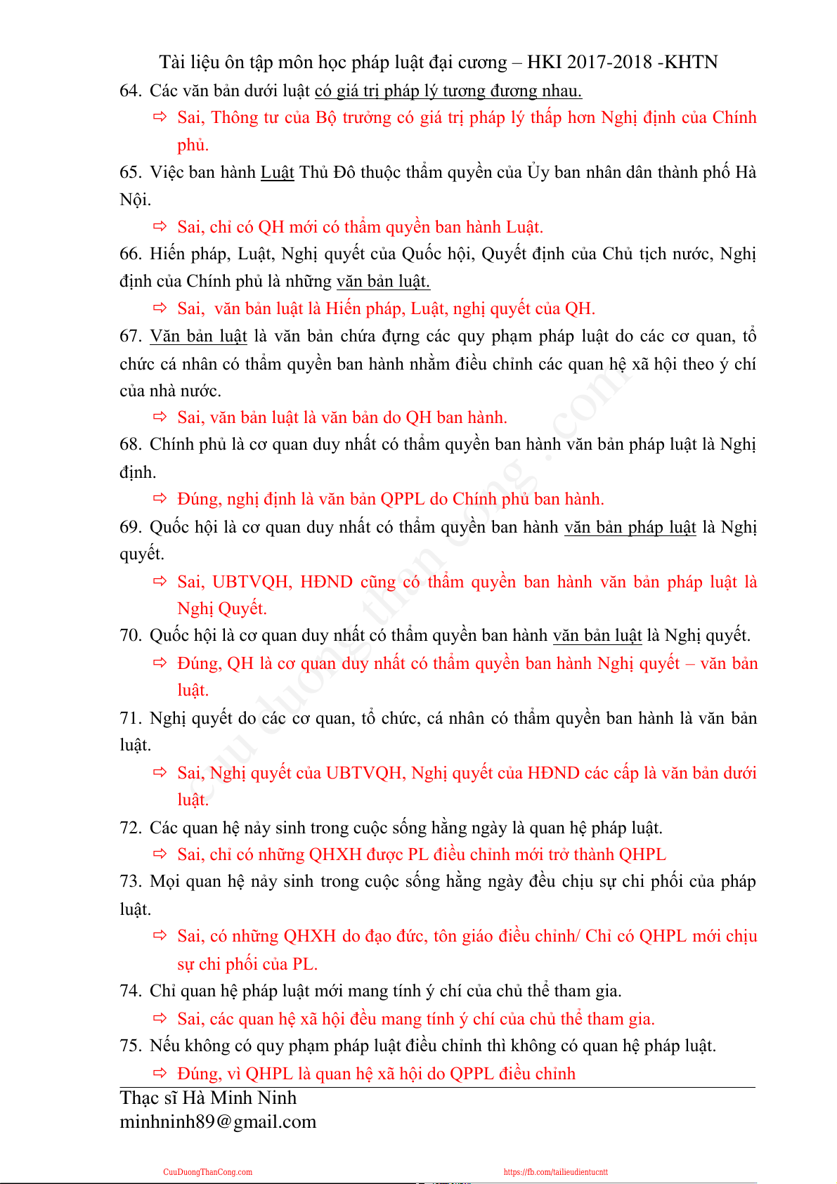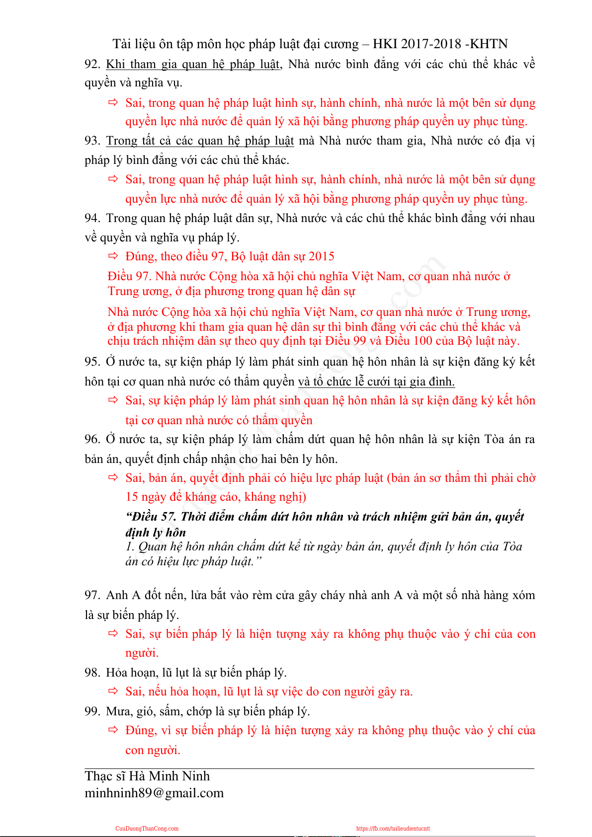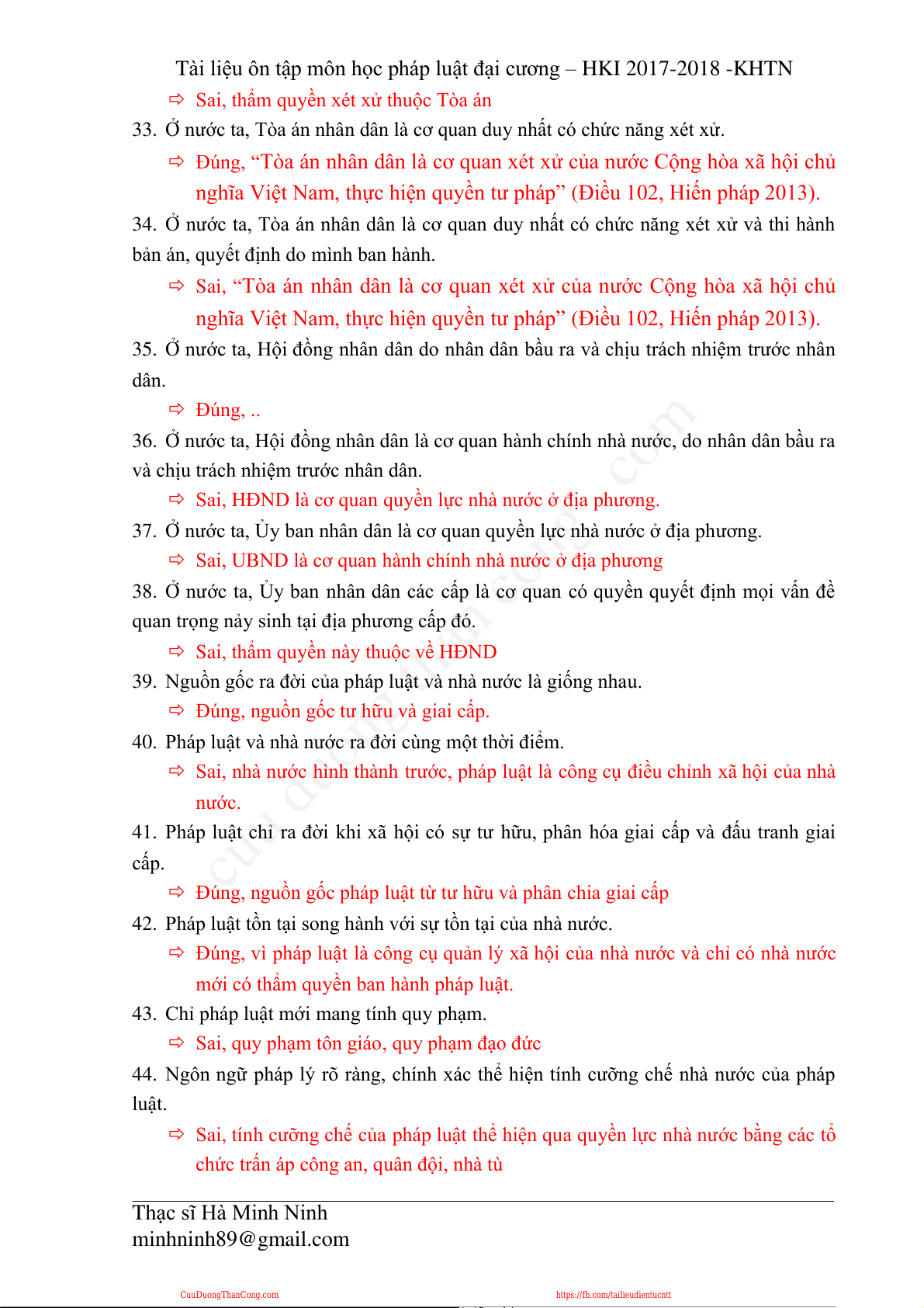 Tài liệu ôn tập môn học pháp luật đại cương – HKI 2017-2018 -KHTN
