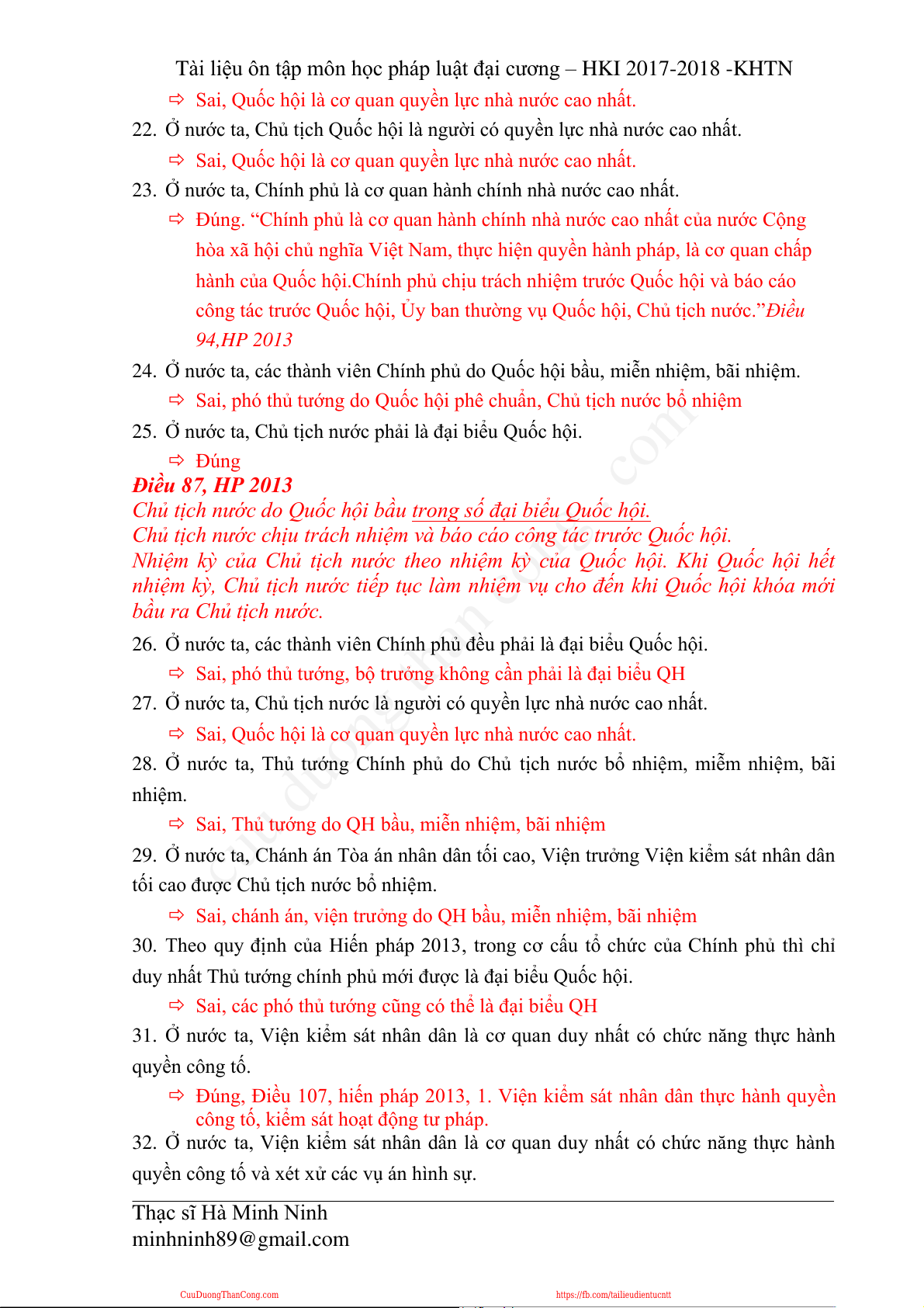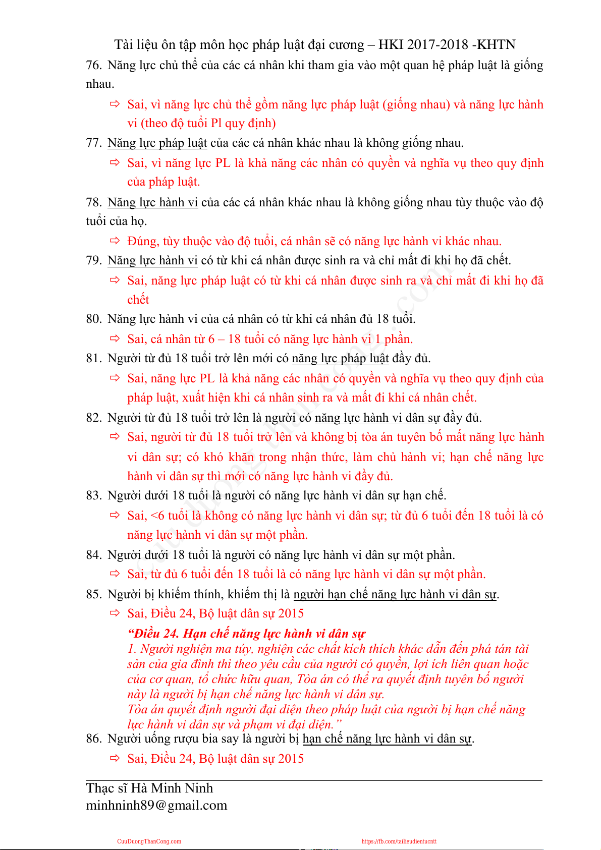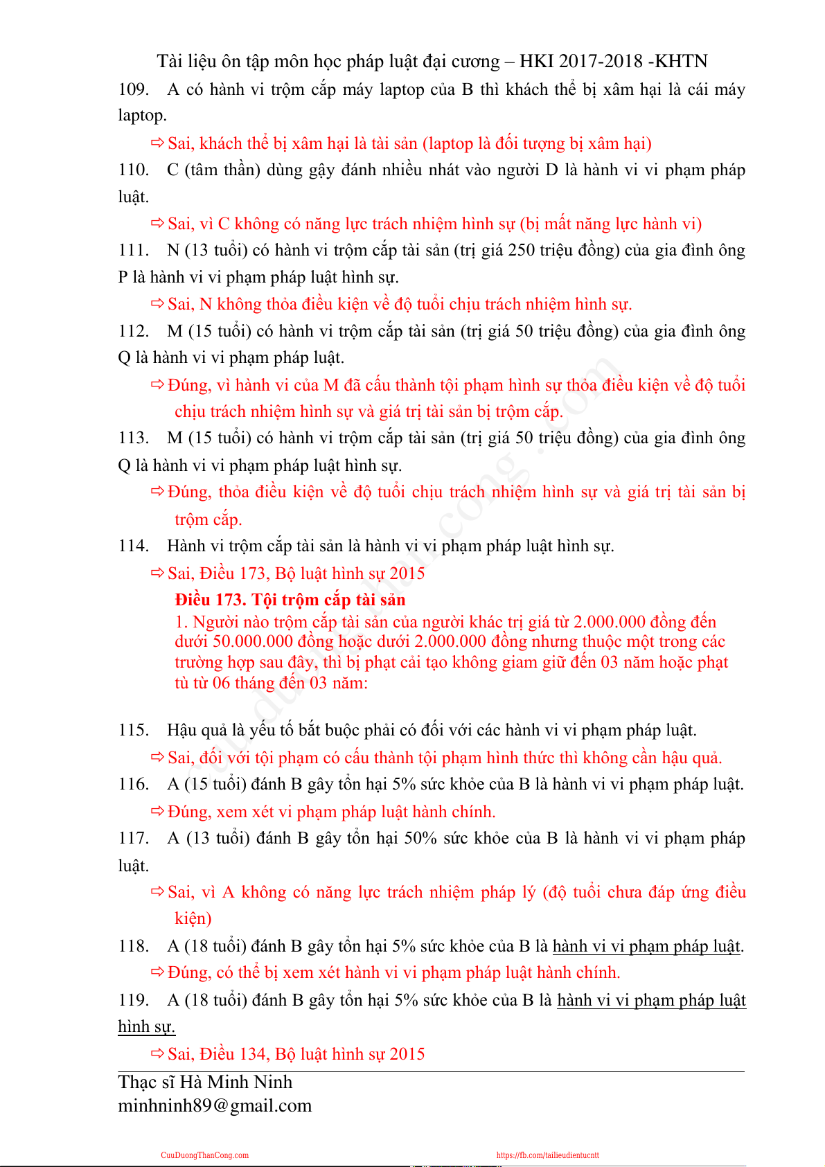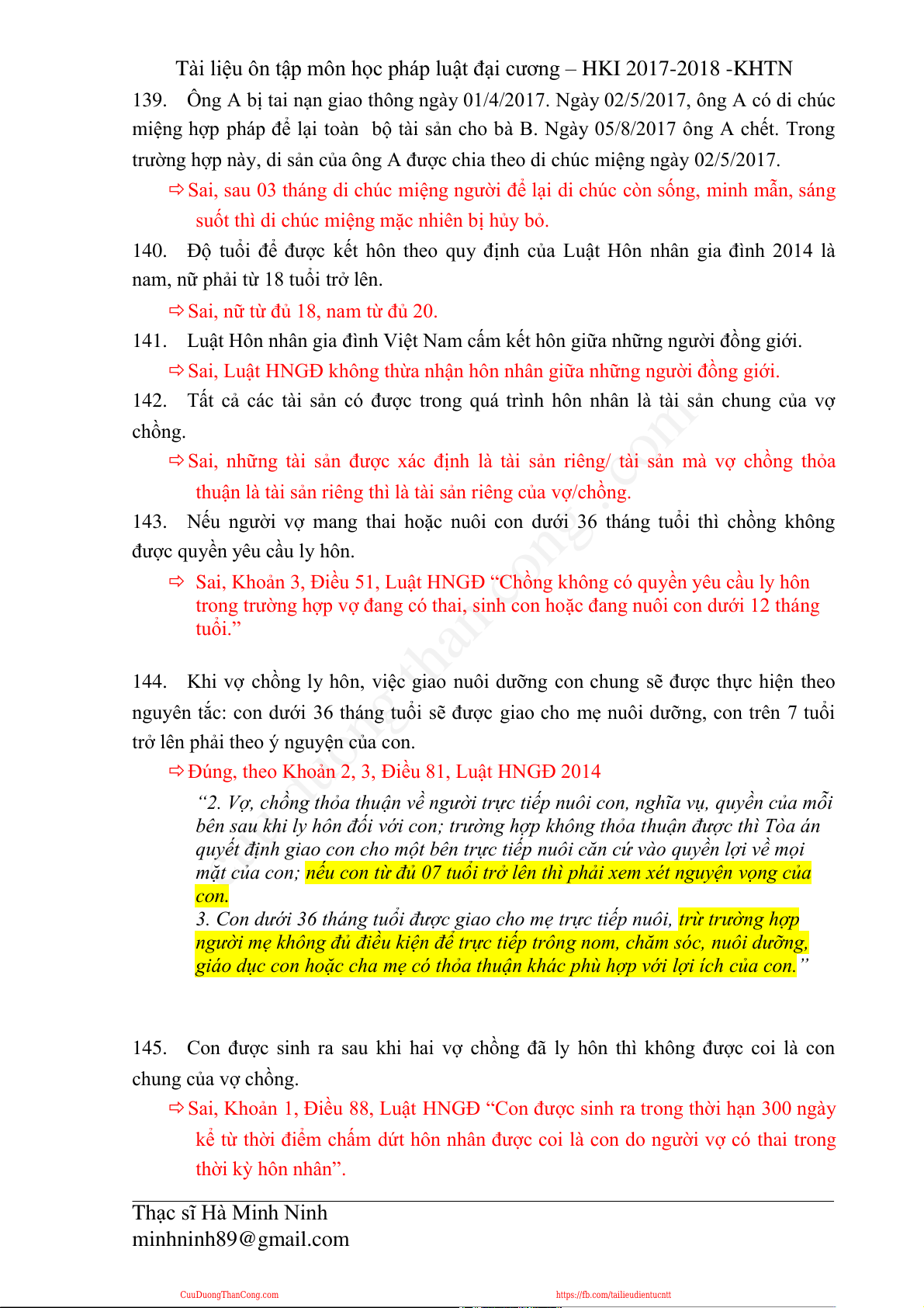 Tài liệu ôn tập môn học pháp luật đại cương – HKI 2017-2018 -KHTN