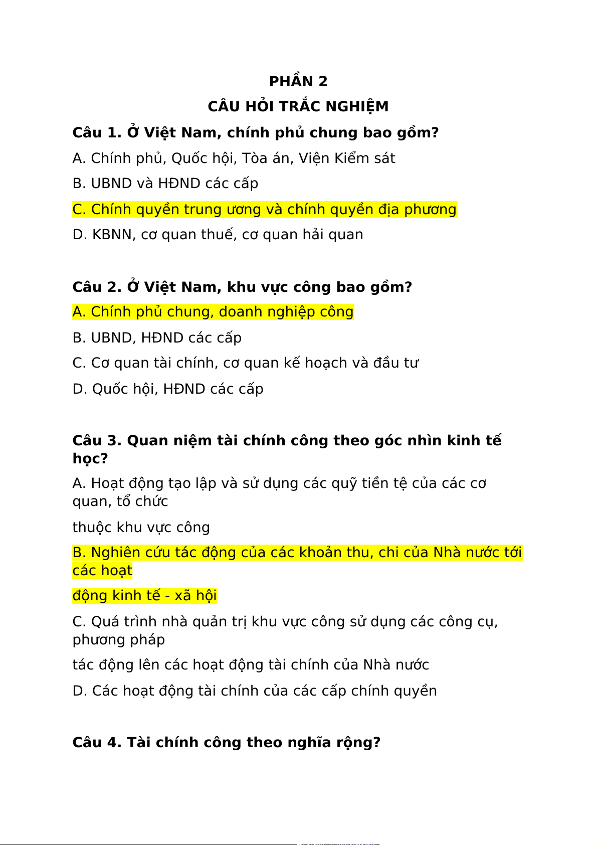 Câu 4. Tài chính công theo nghĩa rộng?
