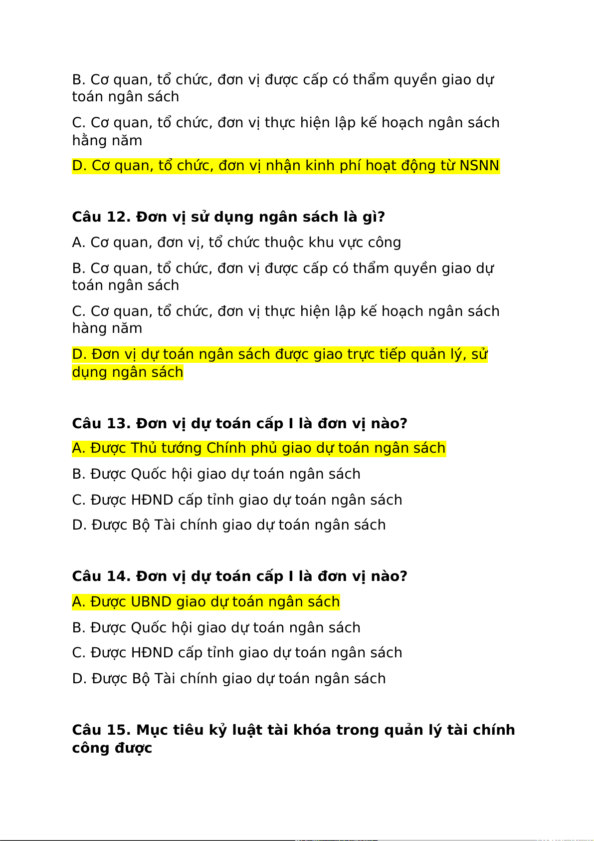 Câu 19. Tuân thủ dự toán ngân sách đã được Quốc hội quyết định