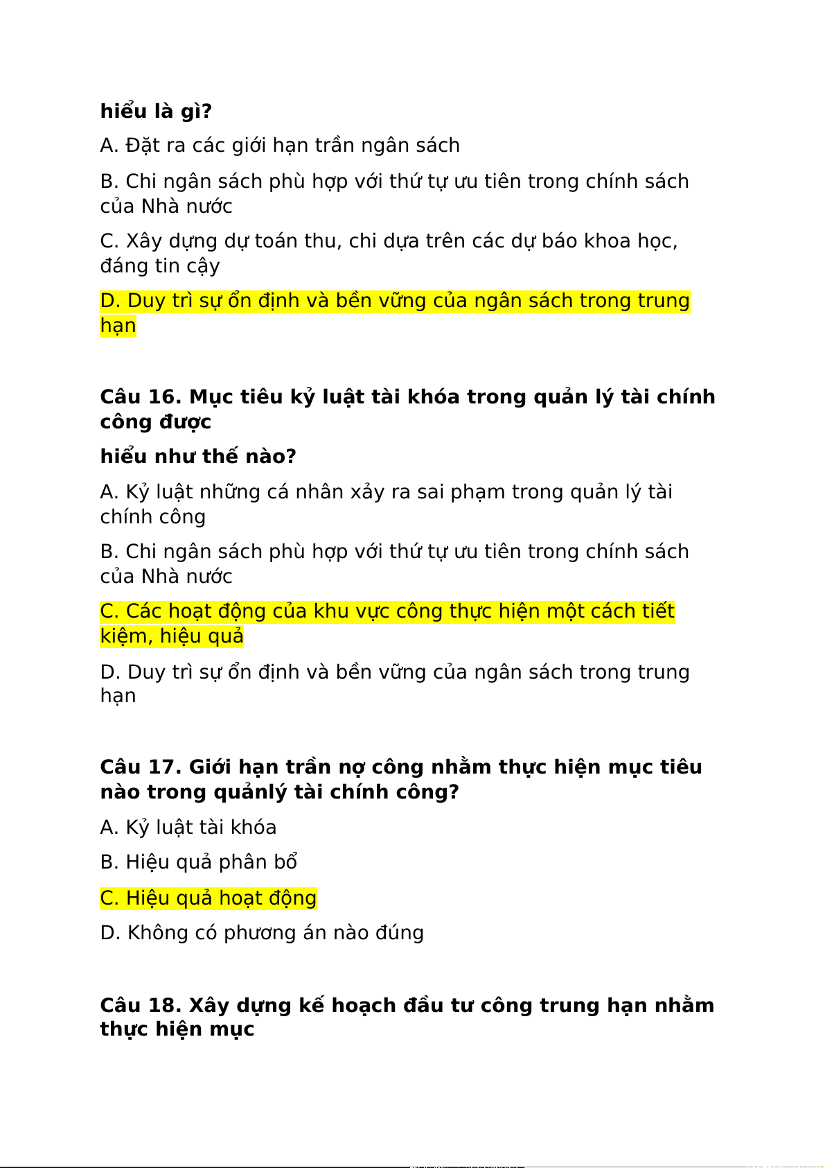 Câu 16. Mục tiêu kỷ luật tài khóa trong quản lý tài chính công được hiểu như thế nào?
