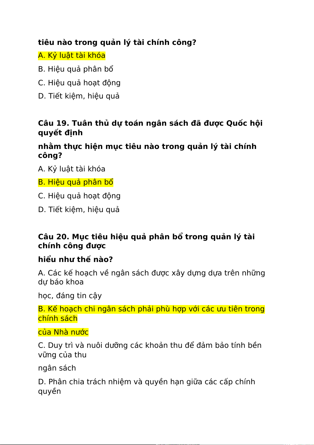 Câu 20. Mục tiêu hiệu quả phân bổ trong quản lý tài chính công được hiểu như thế nào?
