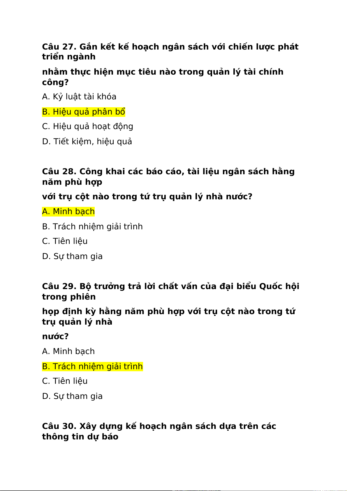 Câu 28. Công khai các báo cáo, tài liệu ngân sách hằng năm phù hợp