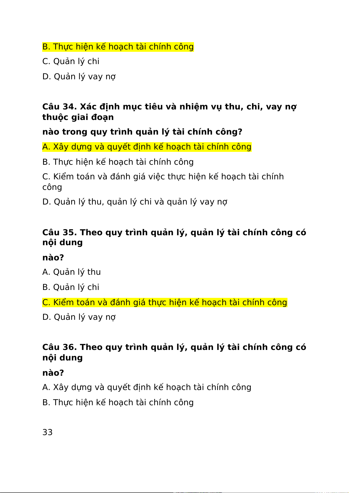Câu 33. Theo quy trình quản lý, quản lý tài chính công có nội dung nào? A. Quản lý thu