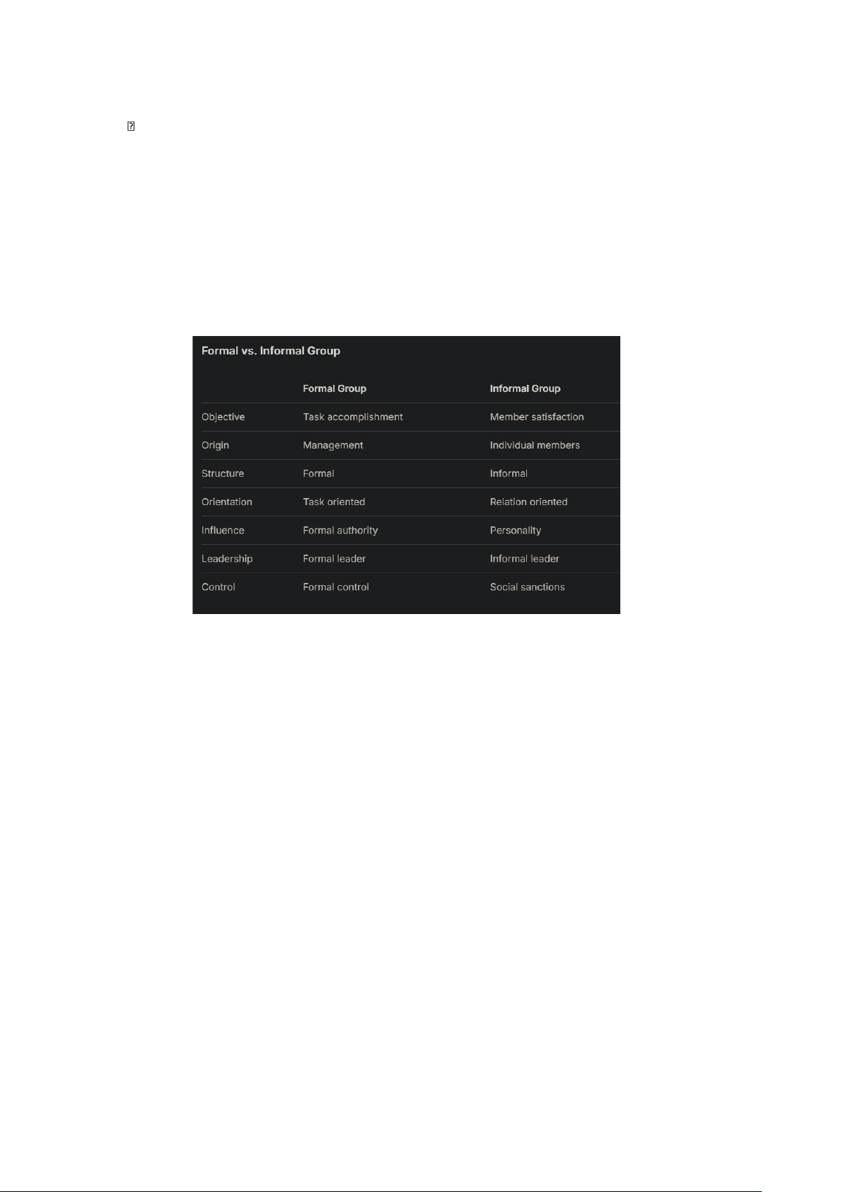 Teams: Typically have a designated leader who guides the team towards its goals and facilitates collaboration. Informal Groups •
