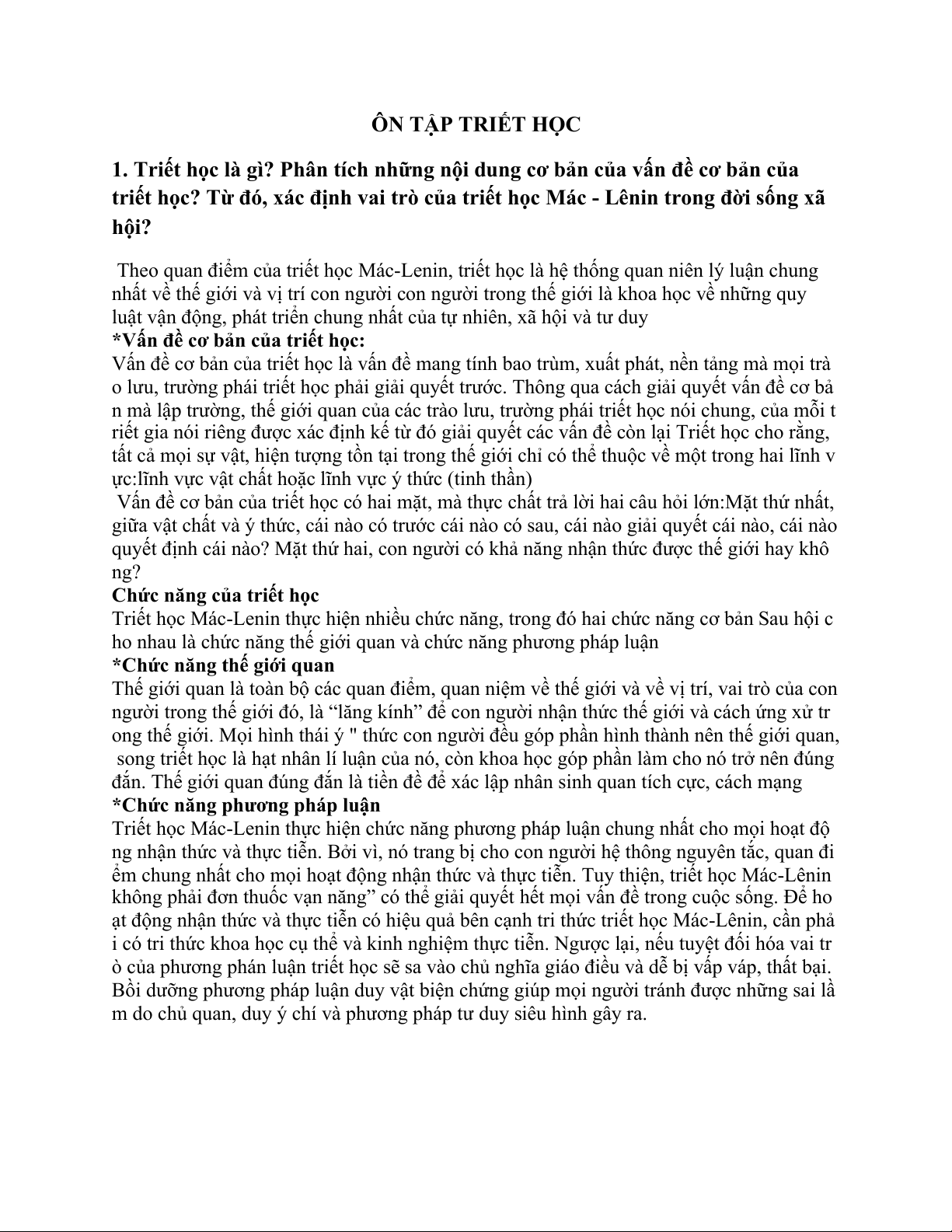 1. Triết học là gì? Phân tích những nội dung cơ bản của vấn đề cơ bản của