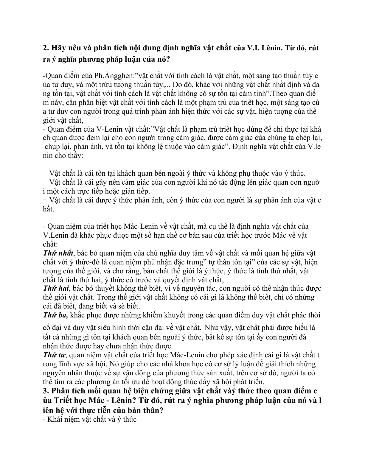 2. Hãy nêu và phân tích nội dung định nghĩa vật chất của V.I. Lênin. Từ đó, rút