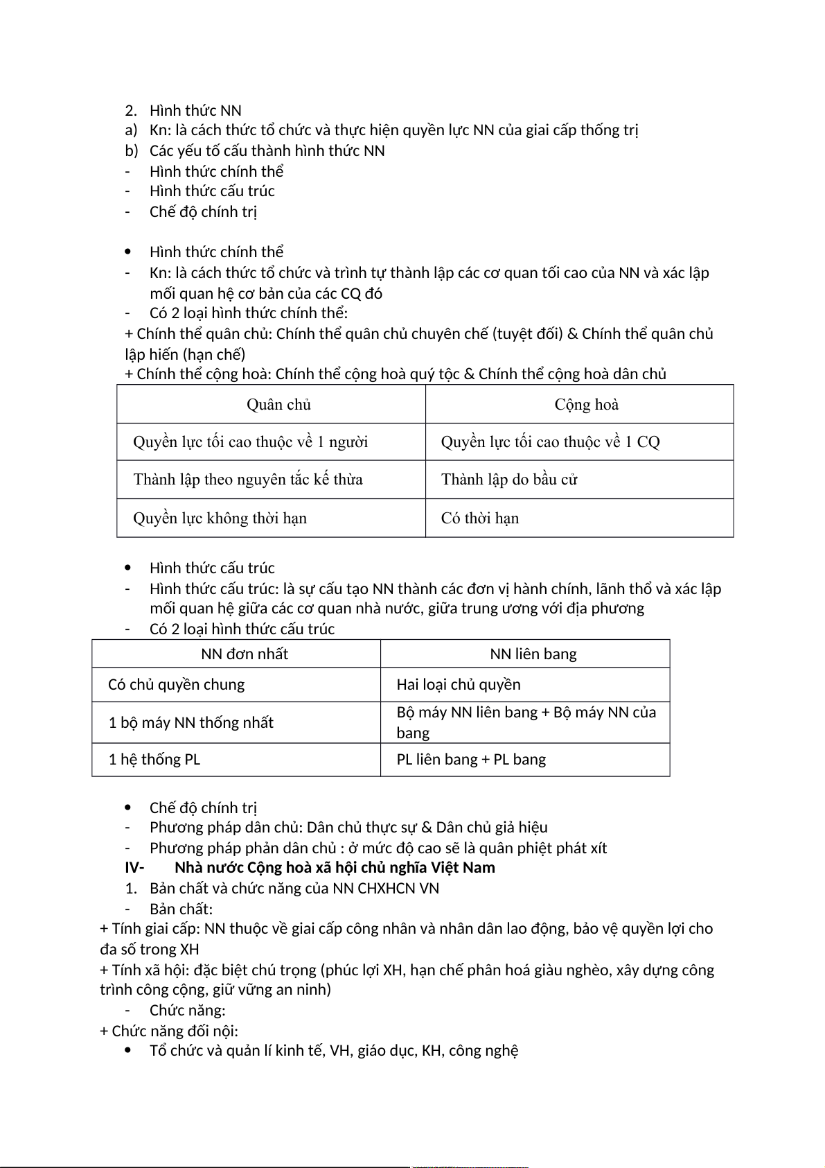 + Chính thể quân chủ: Chính thể quân chủ chuyên chế (tuyệt đối) & Chính thể quân chủ lập hiến (hạn chế)