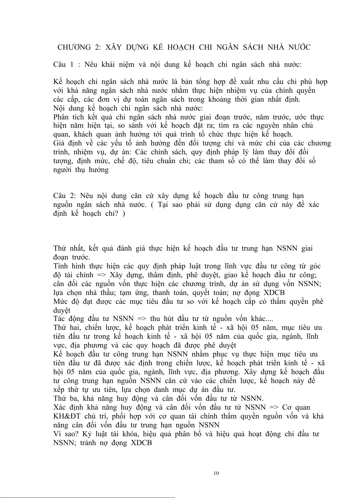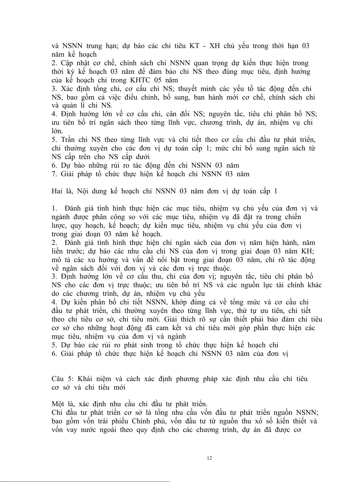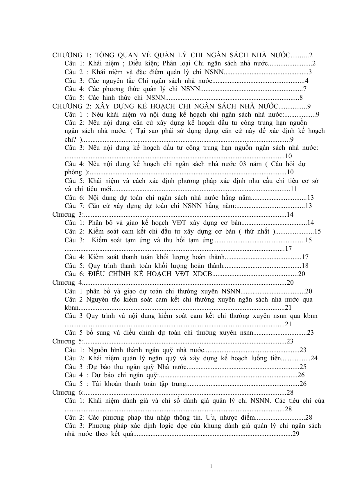 Câu 1 : Nêu khái niệm và nội dung kế hoạch chi ngân sách nhà nước:..................9