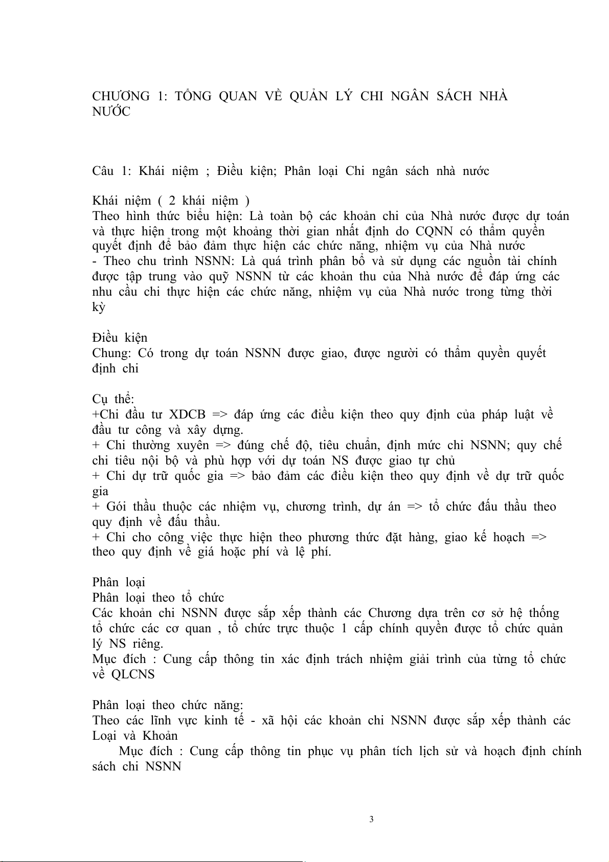 Câu 1: Khái niệm ; Điều kiện; Phân loại Chi ngân sách nhà nước