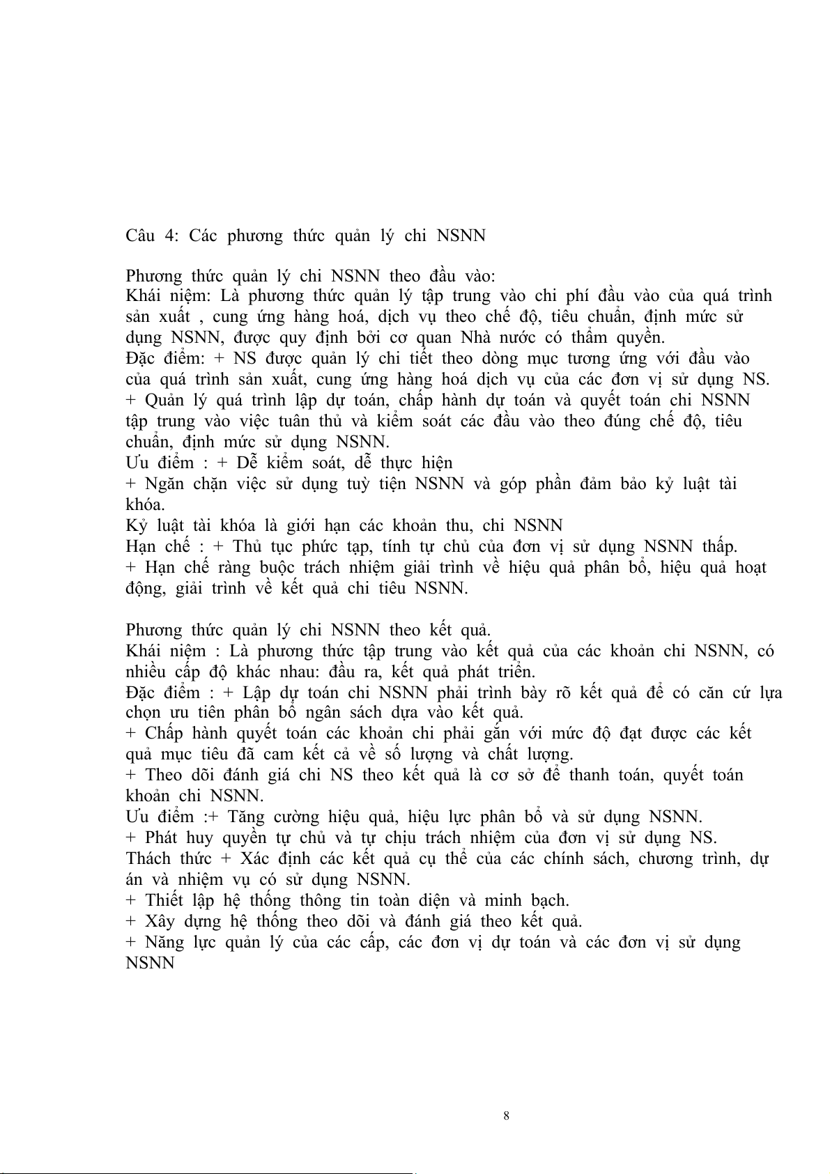 Câu 4: Các phương thức quản lý chi NSNN...........................................................7