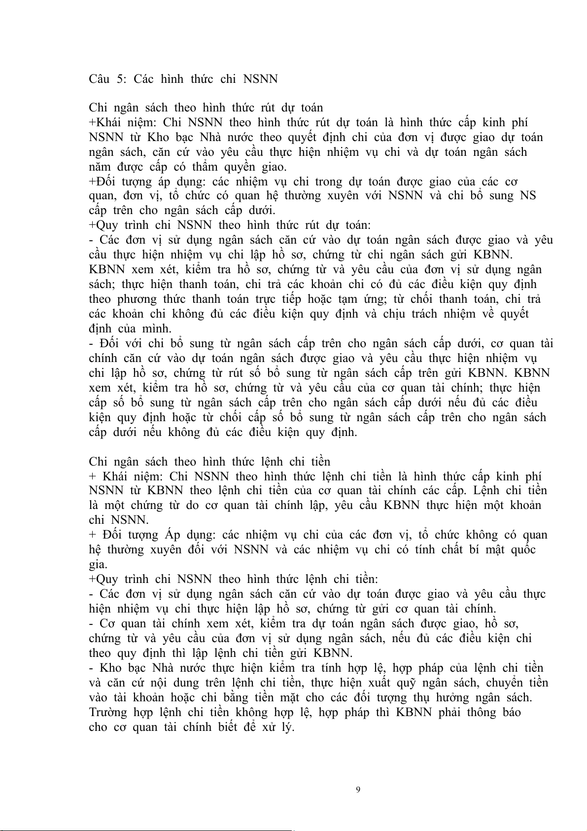 Câu 5: Các hình thức chi NSNN.............................................................................8