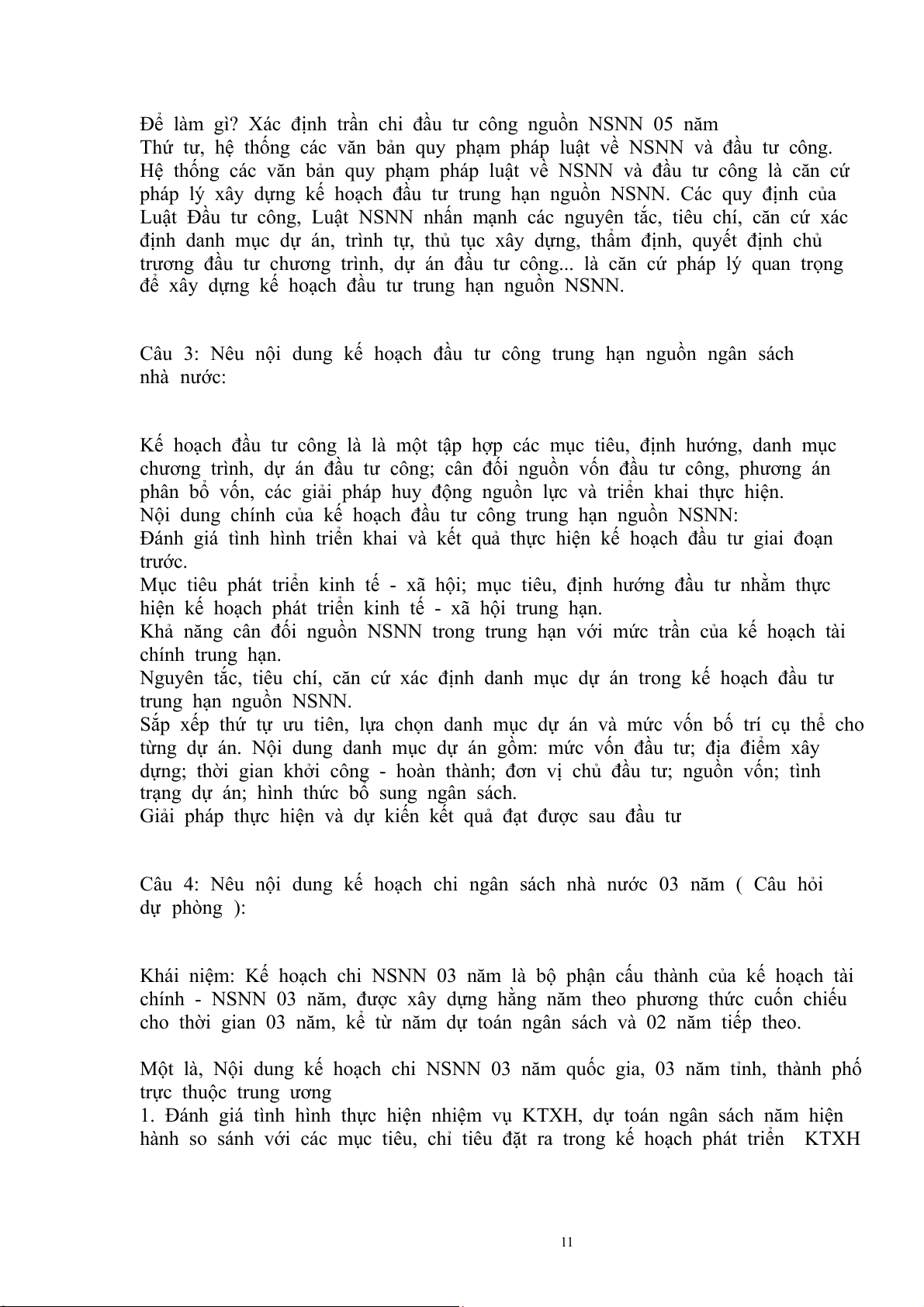 Câu 4: Nêu nội dung kế hoạch chi ngân sách nhà nước 03 năm ( Câu hỏi dự