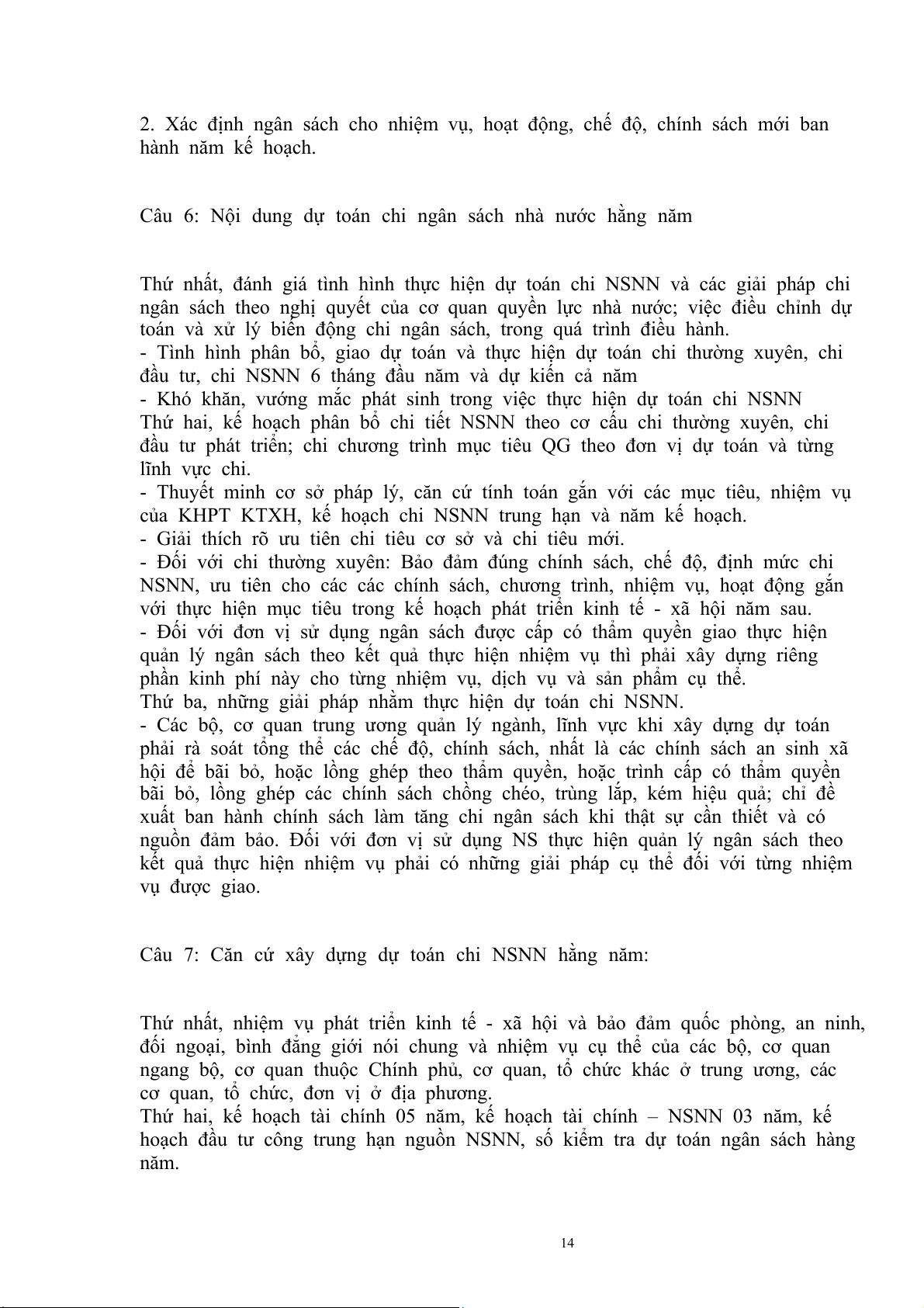 Câu 7: Căn cứ xây dựng dự toán chi NSNN hằng năm:.......................................13