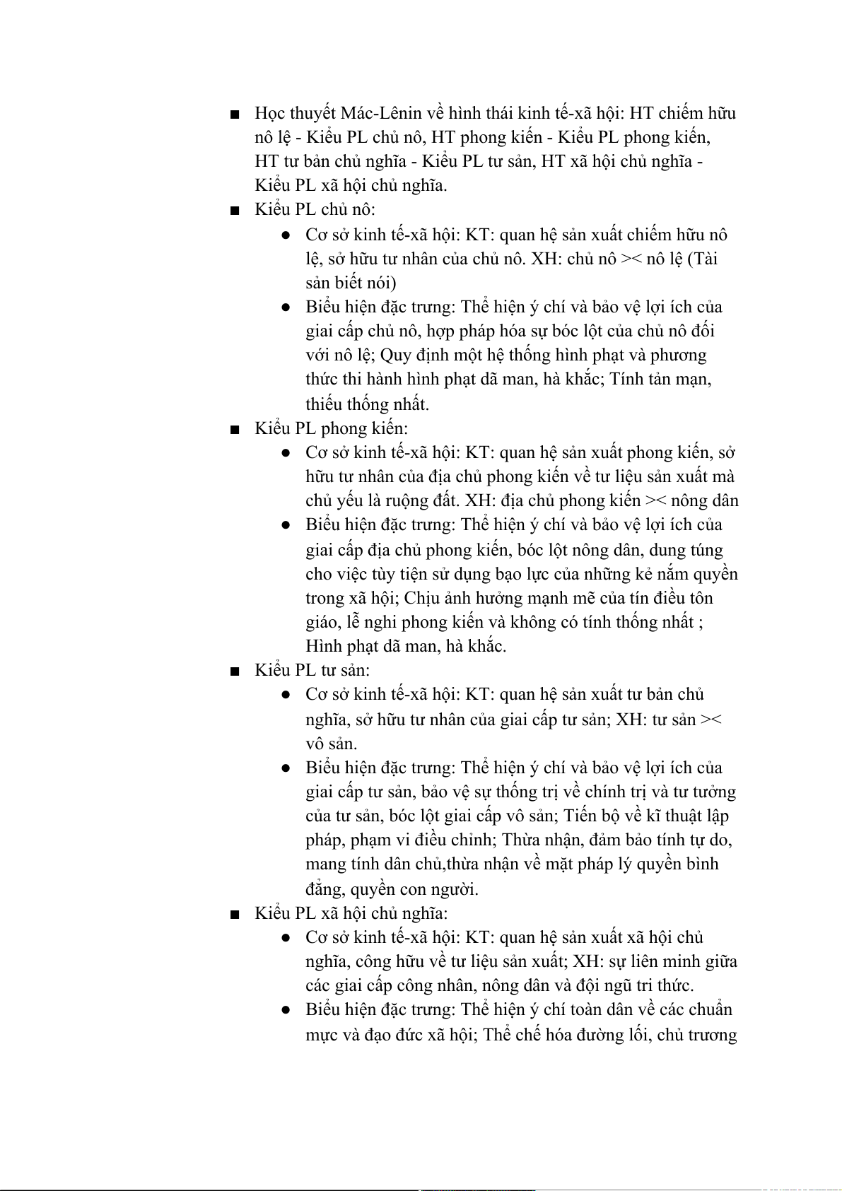 kiến, tư sản: tính giai cấp rõ nét, bóc lột. PL XHCN: bảo