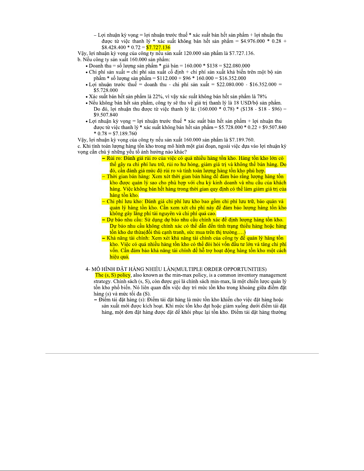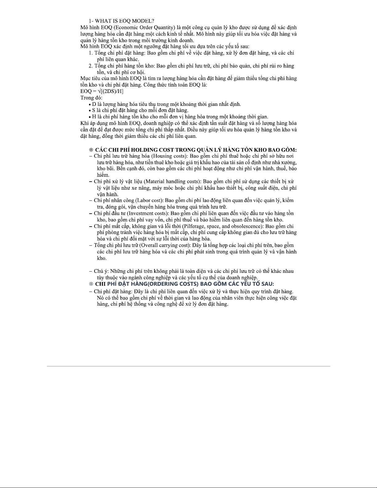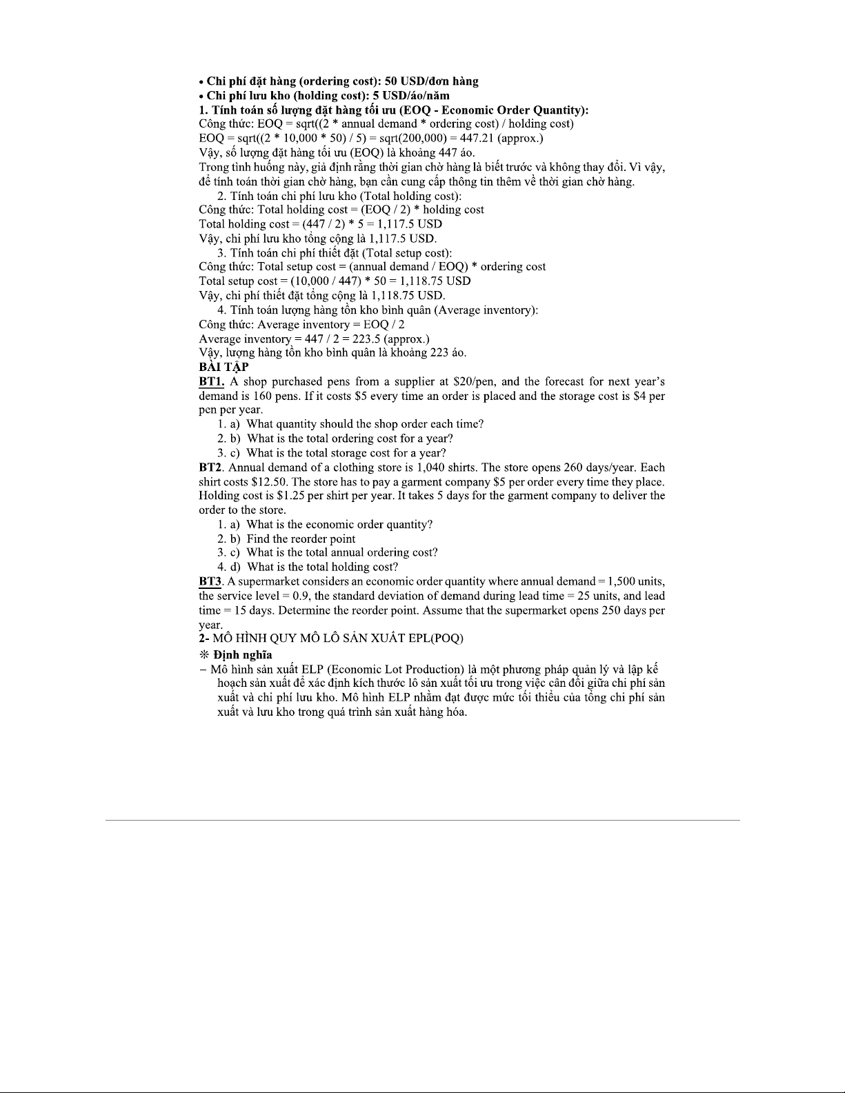 ÔN TẬP CHƯƠNG 2 - Mô Hình EOQ và Chi Phí Quản Lý Hàng Tồn Kho