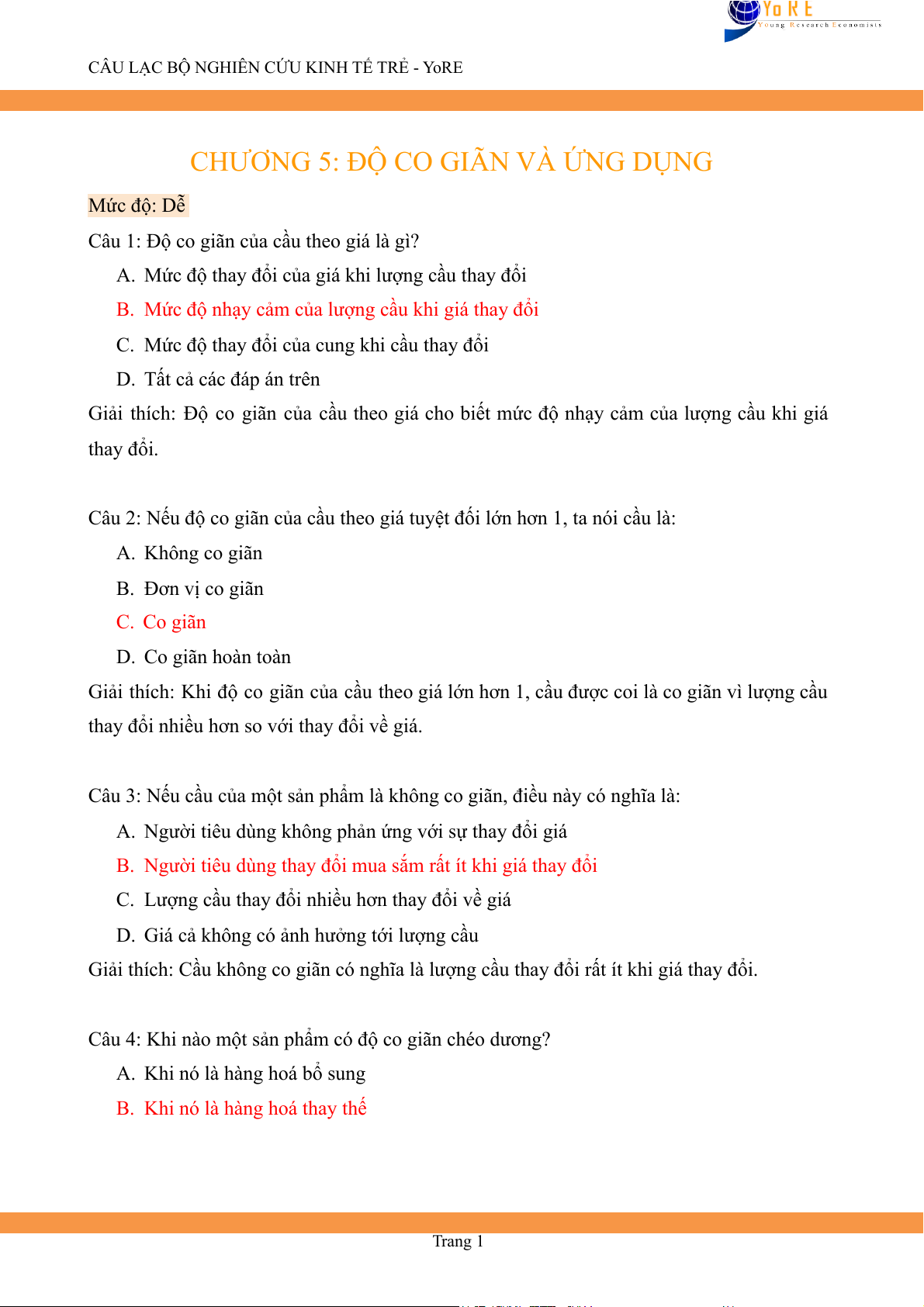 CHƯƠNG 5: ĐỘ CO GIÃN VÀ ỨNG DỤNG Mức độ: Dễ