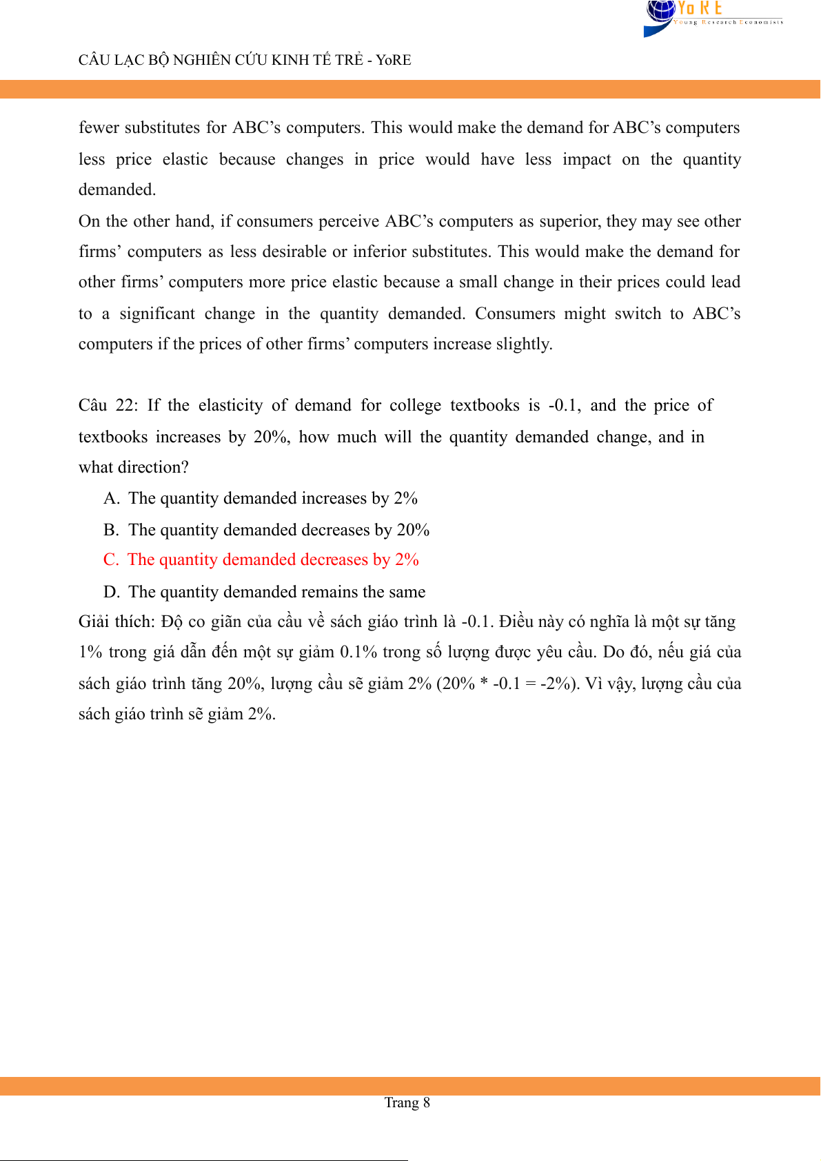 sách giáo trình sẽ giảm 2%. Trang 8