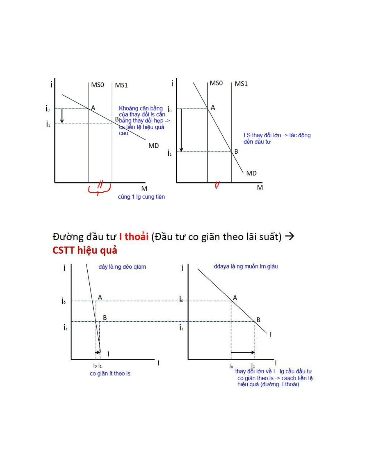 Đường thẳng đúng MS ko đc quyết định bởi lãi suất I mà dc quyết định bởi nhtw khi mà tăng hoặc giảm cơ sở tiền.