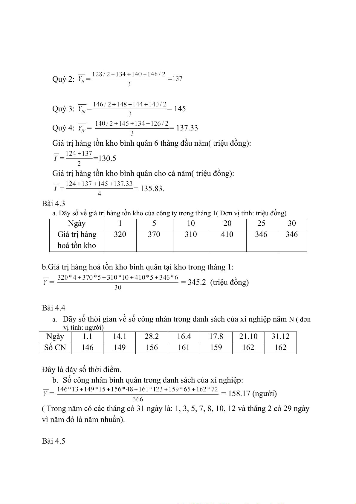 Giá trị hàng tồn kho bình quân cho cả năm( triệu đồng): = = 135.83. Bài 4.3