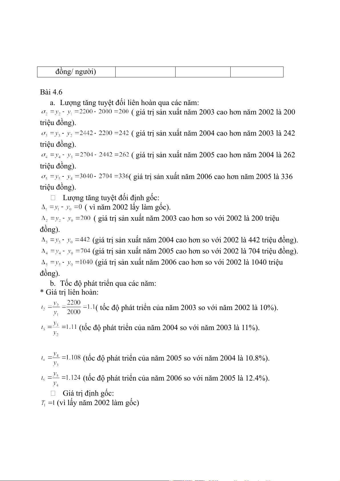 ( tốc độ phát triển của năm 2003 so với năm 2002 là 10%).