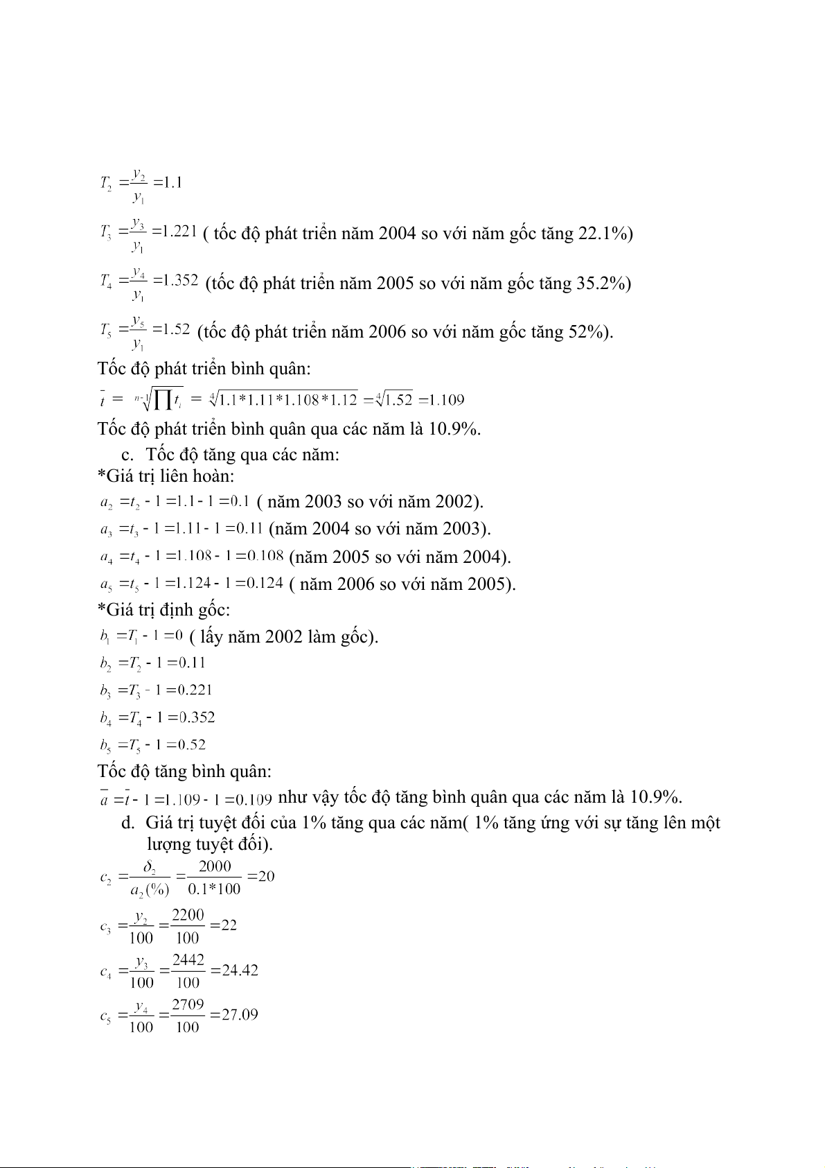 d. Giá trị tuyệt đối của 1% tăng qua các năm( 1% tăng ứng với sự tăng lên một lượng tuyệt đối).