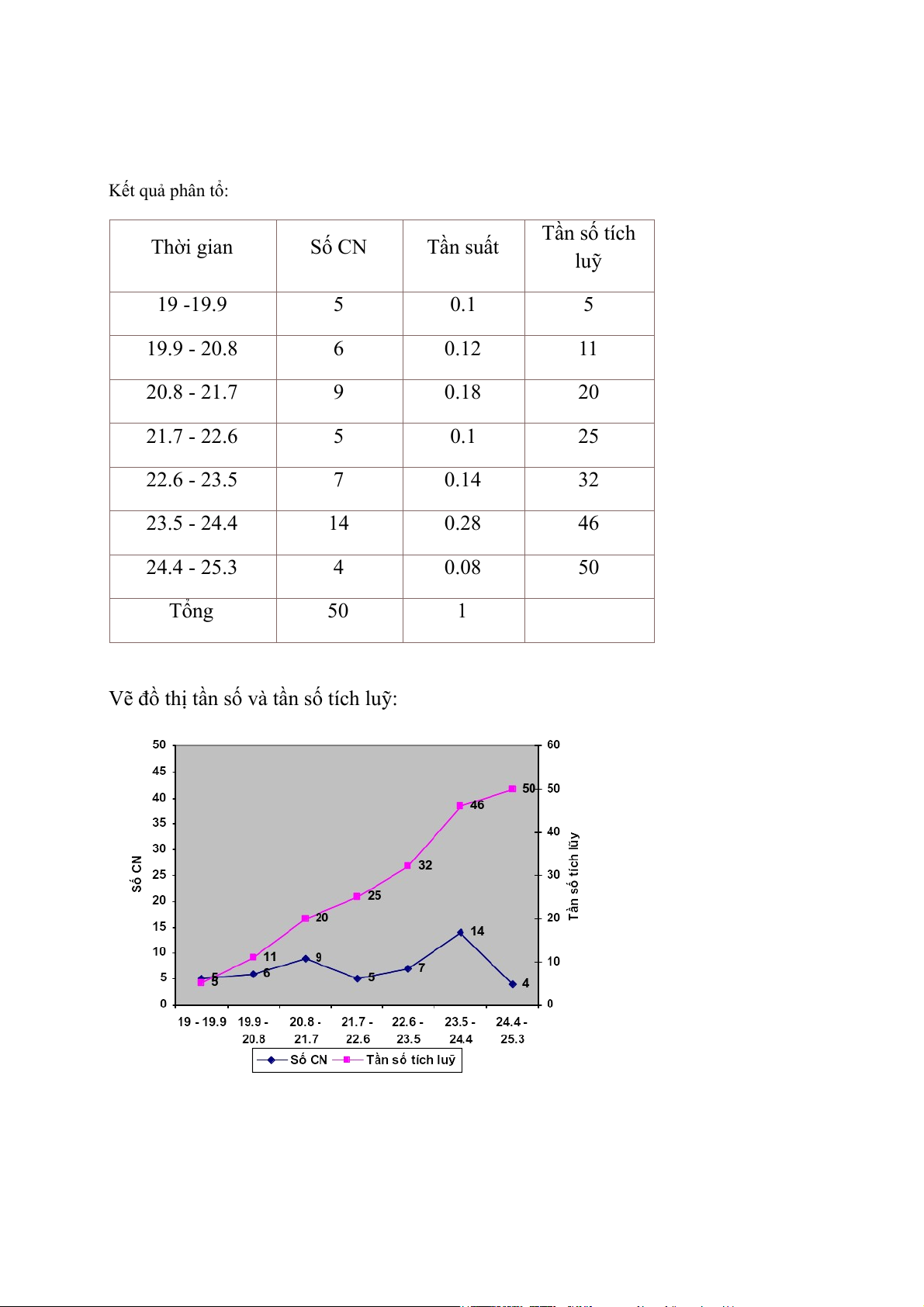 Vẽ đồ thị tần số và tần số tích luỹ: CHƯƠNG III: