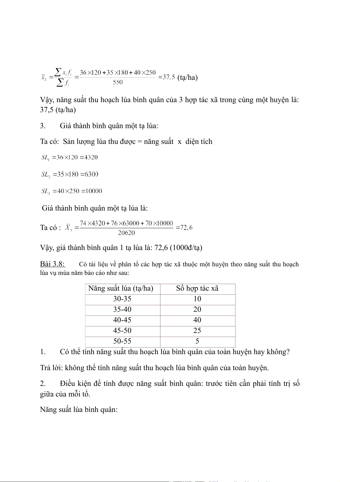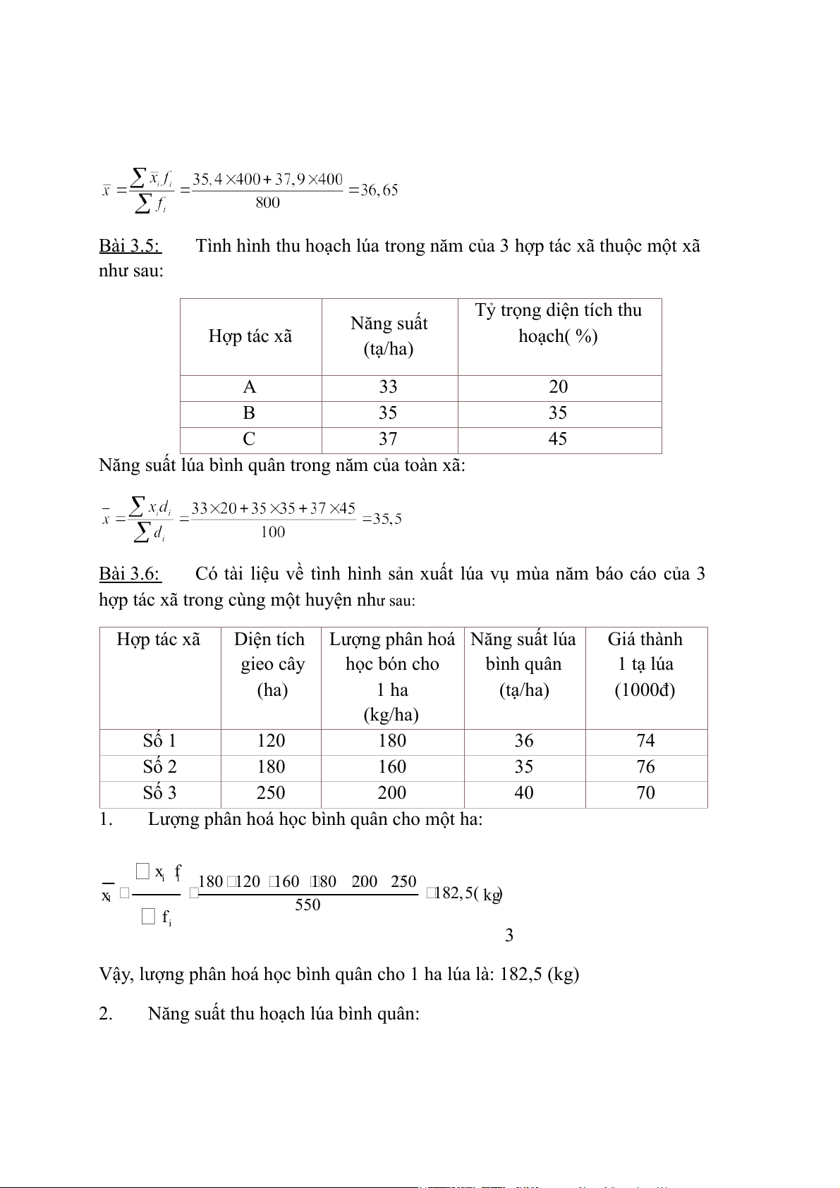 Vậy, năng suất thu hoạch lúa bình quân của 3 hợp tác xã trong cùng một huyện là: 37,5 (tạ/ha) 3.