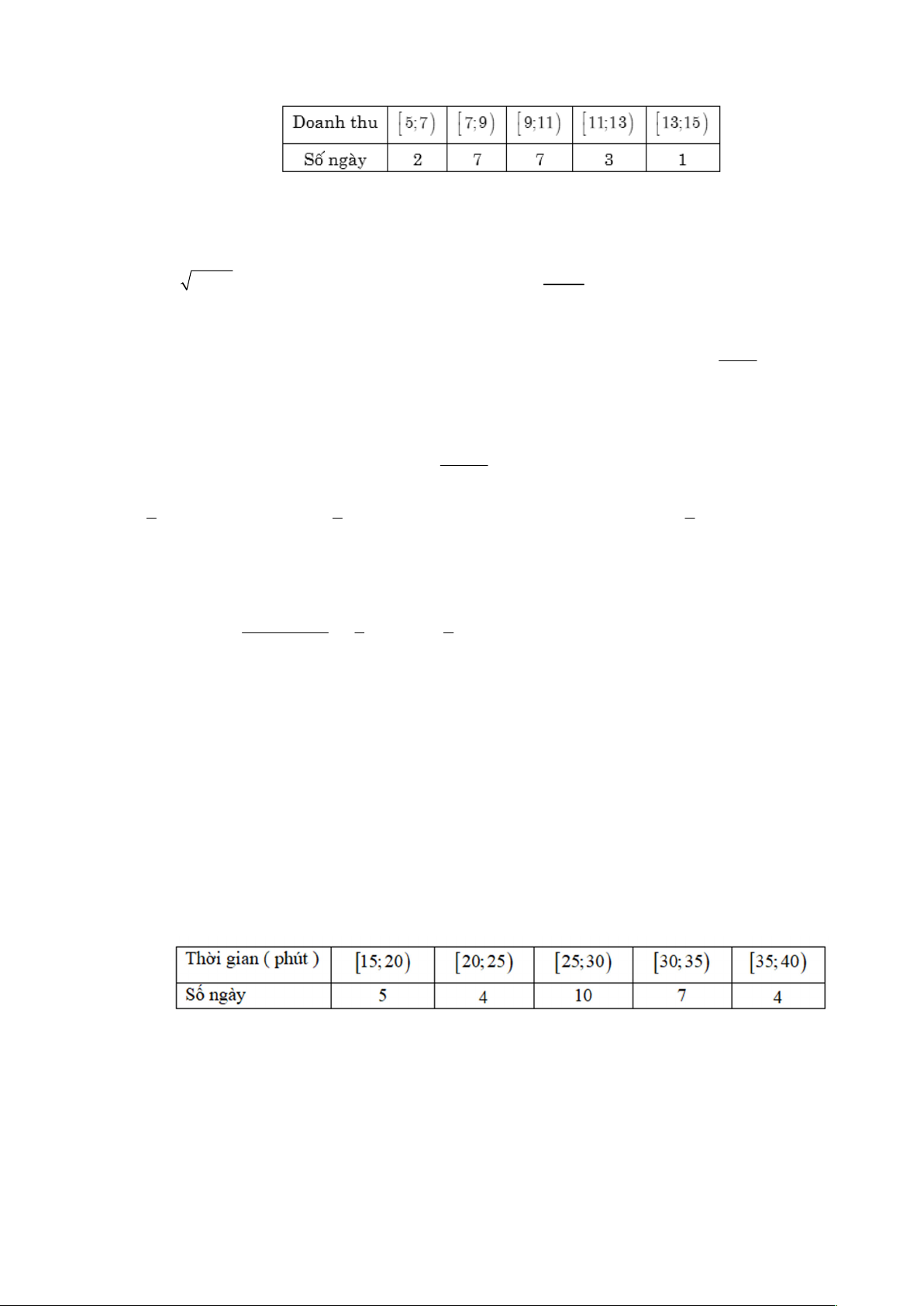 Câu 22: Doanh thu bán hàng trong 20 ngày được lựa chọn ngẫu nhiên của một của hàng được ghi lại ở bảng sau: