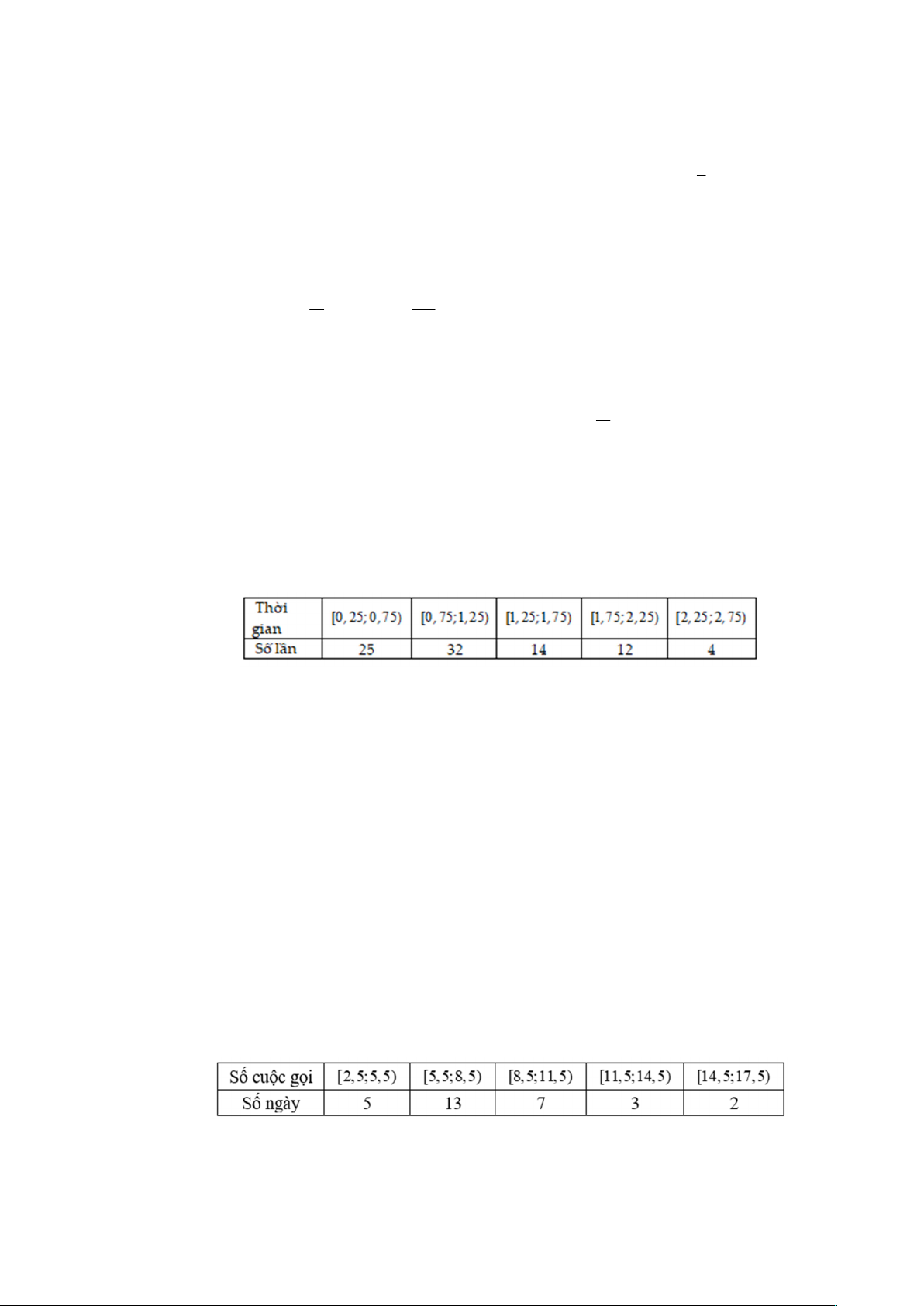 Câu 6: Số cuộc điện thoại một người thực hiện mỗi ngày trong 30 ngày được lựa chọn ngẫu nhiên được thống kê trong bảng sau: