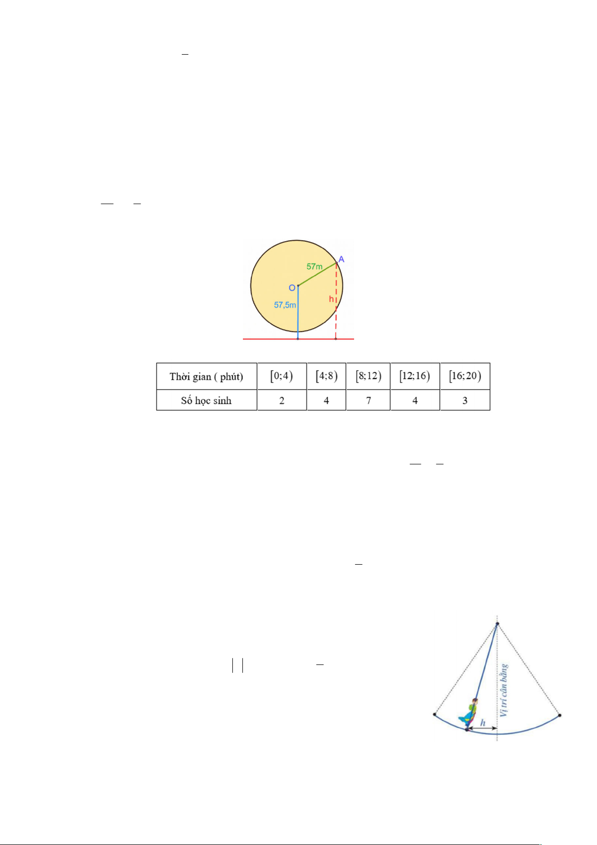 Câu 4: Một vòng quay trò chơi có bán kính 57 m, trục quay cách mặt đất 57,5 m. Khi vòng quay quay đều,