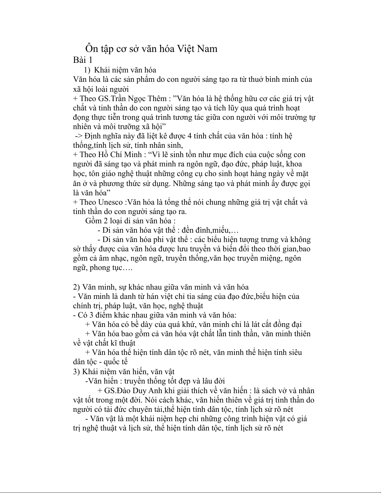 Ôn tập cơ sở văn hóa Việt Nam Bài 1 1) Khái niệm văn hóa
