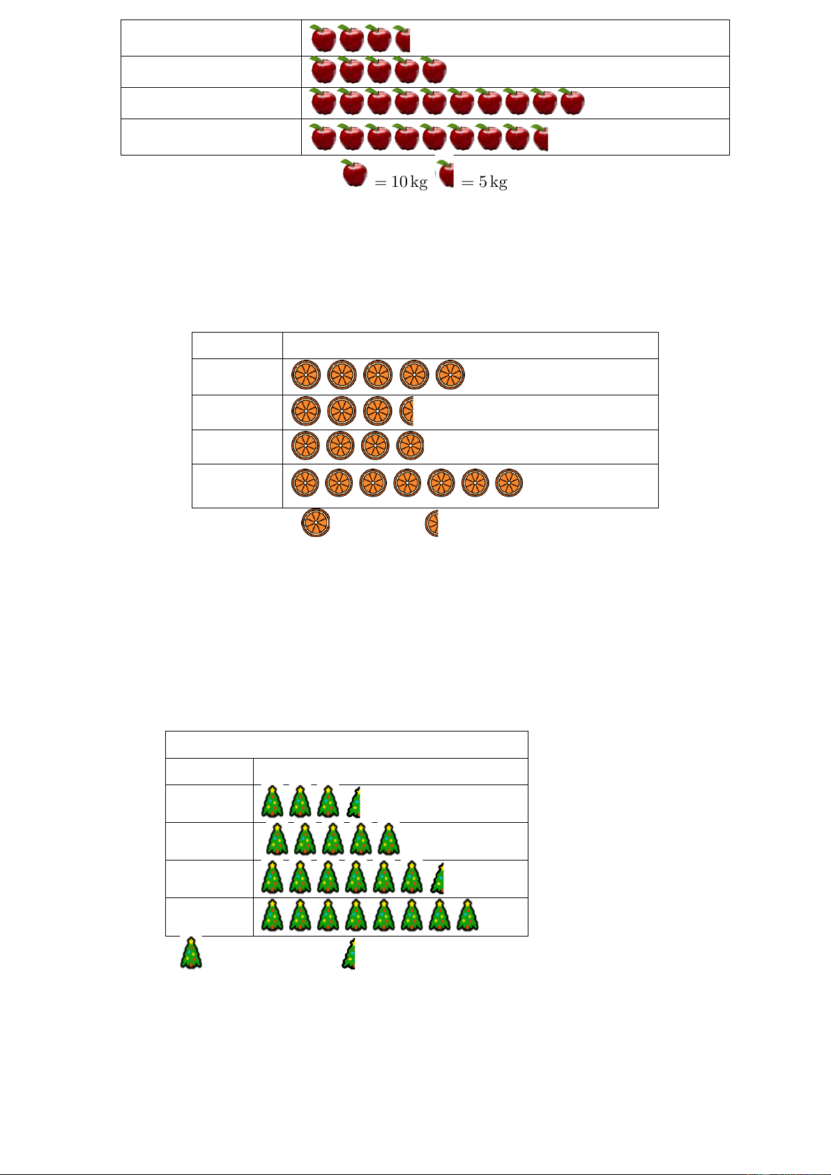 Số ki-lô-gam cam bán được Thứ 5 Thứ 6 Thứ 7 Chủ nhật Biết rằng: = 10 kg ; = 5 kg